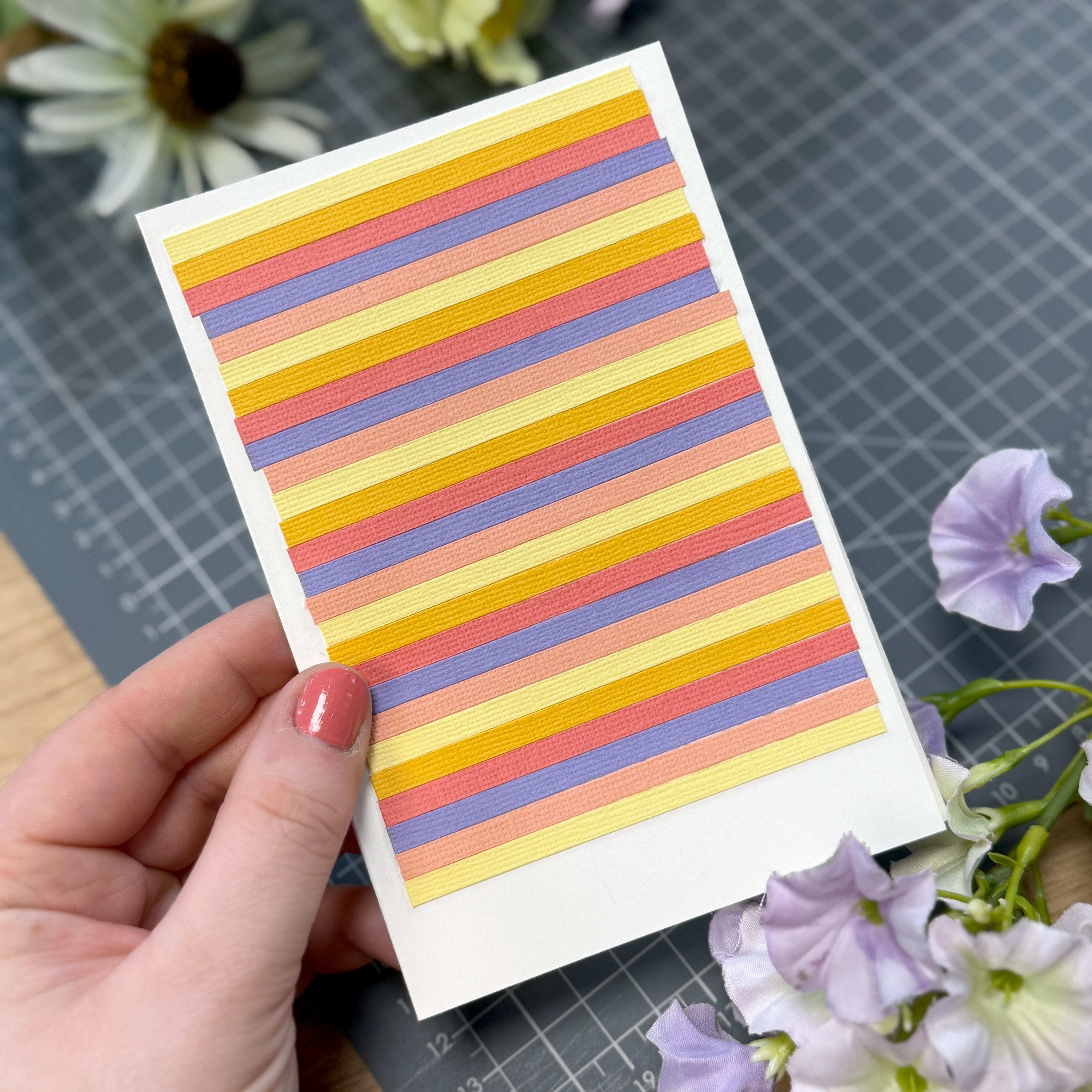 Kleben Sie die Streifen als Hintergrund auf die Vorderseite der Karte.