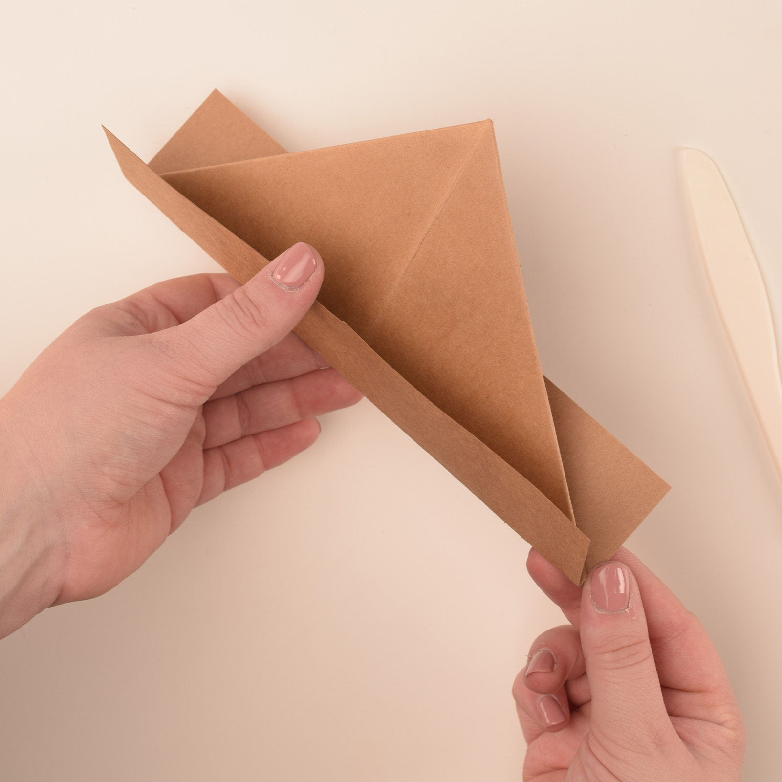 Öffnen Sie die Unterseite und ziehen Sie die Ecken nach außen, sodass ein Quadrat entsteht.