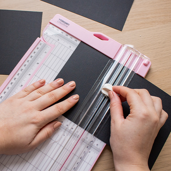 Schneiden Sie ein Rechteck von 13,5 x 9 cm aus schwarzem Karton aus.