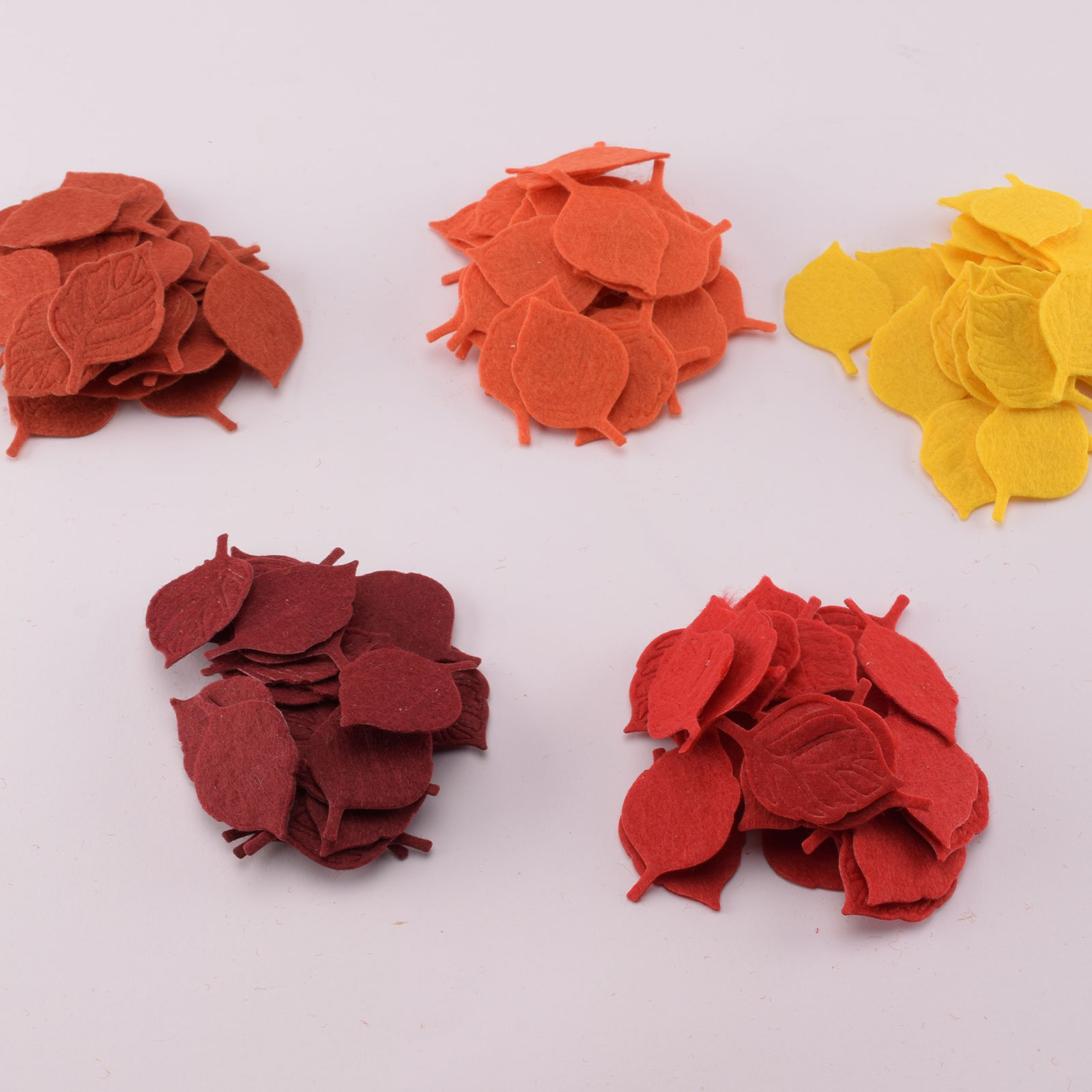 Wiederholen Sie diesen Vorgang mit den anderen Filzfarben, bis Sie fünf Stapel Blätter in verschiedenen Farben haben.