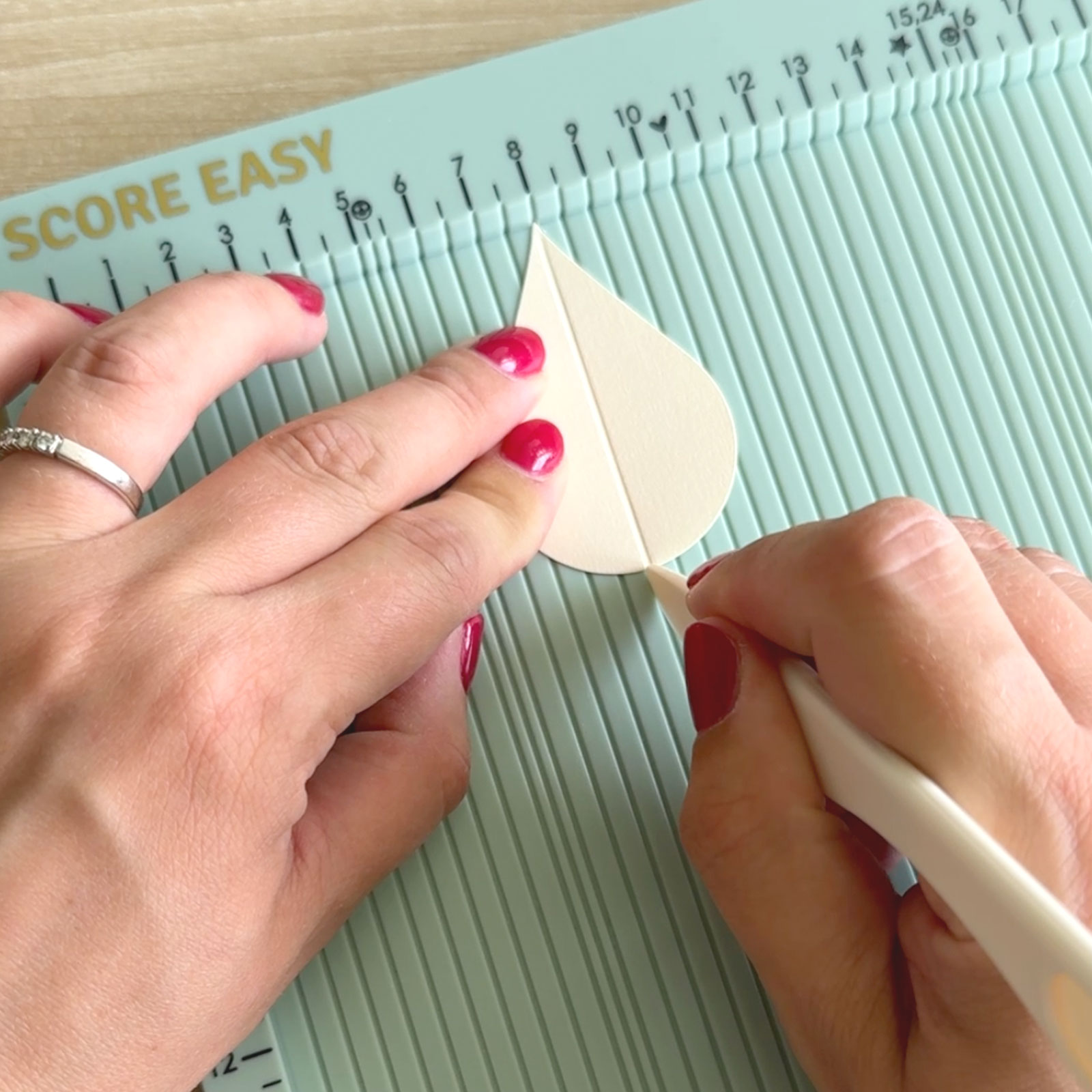 Legen Sie jeden Tropfen auf die Score Easy und machen Sie eine Falzlinie genau in der Mitte.