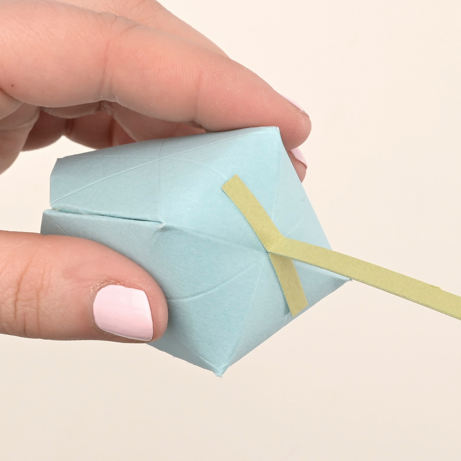 Befestigen Sie die Streifen mit Kleber oder Klebeband an der Unterseite der Tulpe.