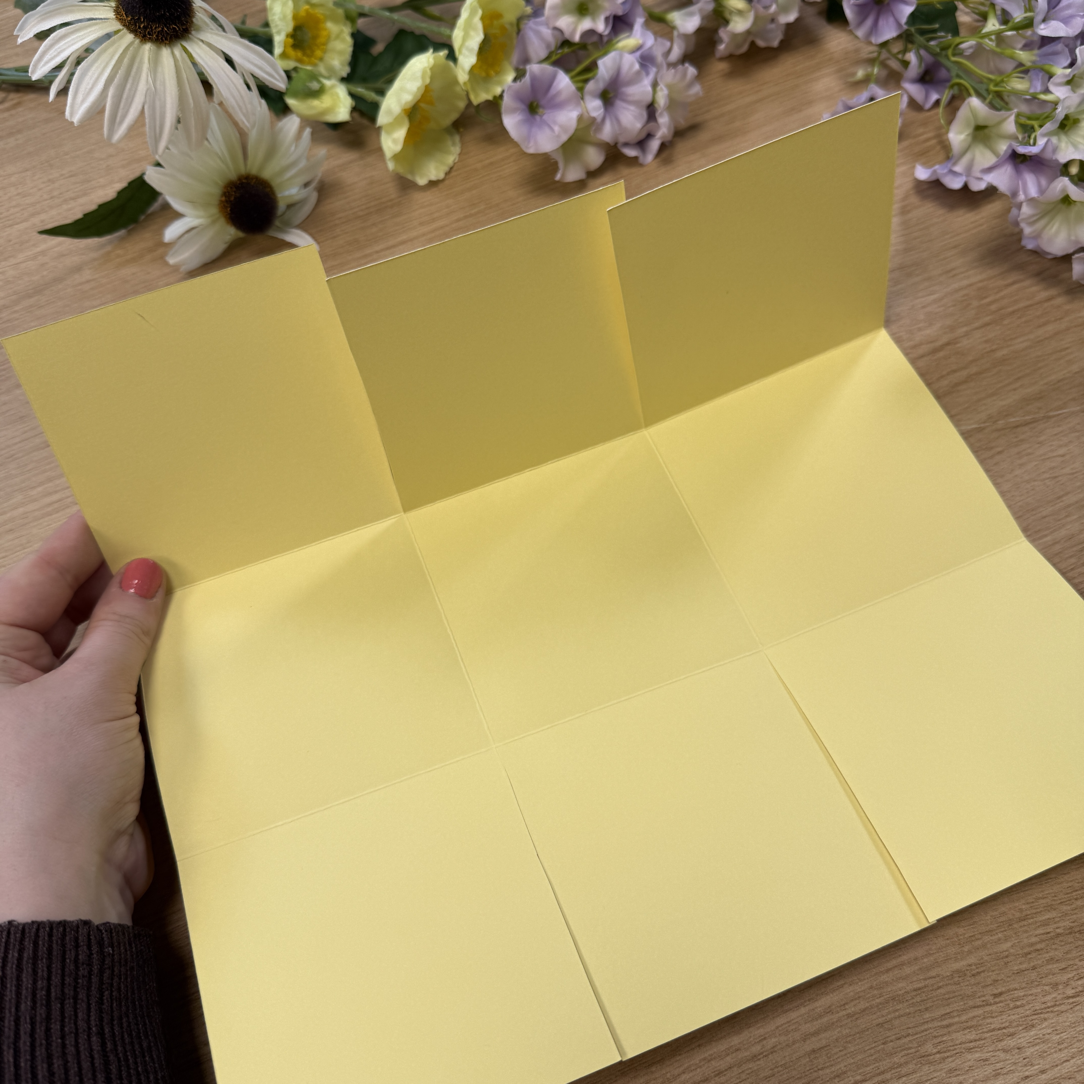 Trim a sheet of cardstock from 12 x 12 inches (30.5 x 30.5 cm) down to 11.8 x 11.8 inches (30 x 30 cm).