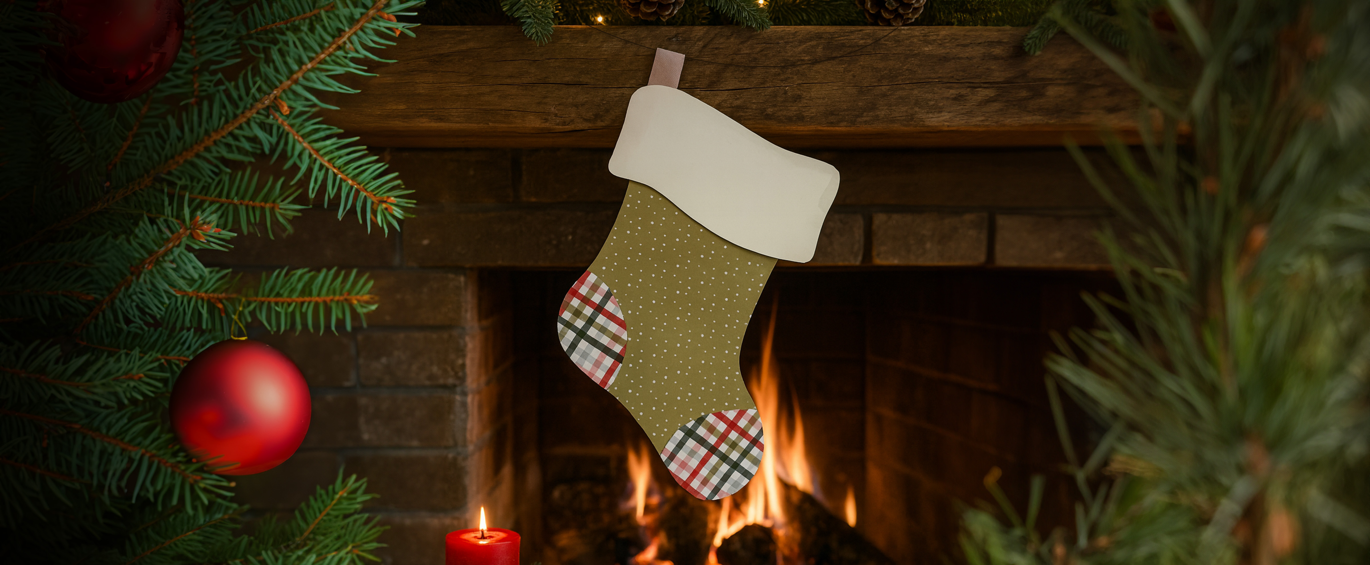 Glue all the pieces together. Decorate your stocking with bells, fabric, a name or any fun embellishments you like!