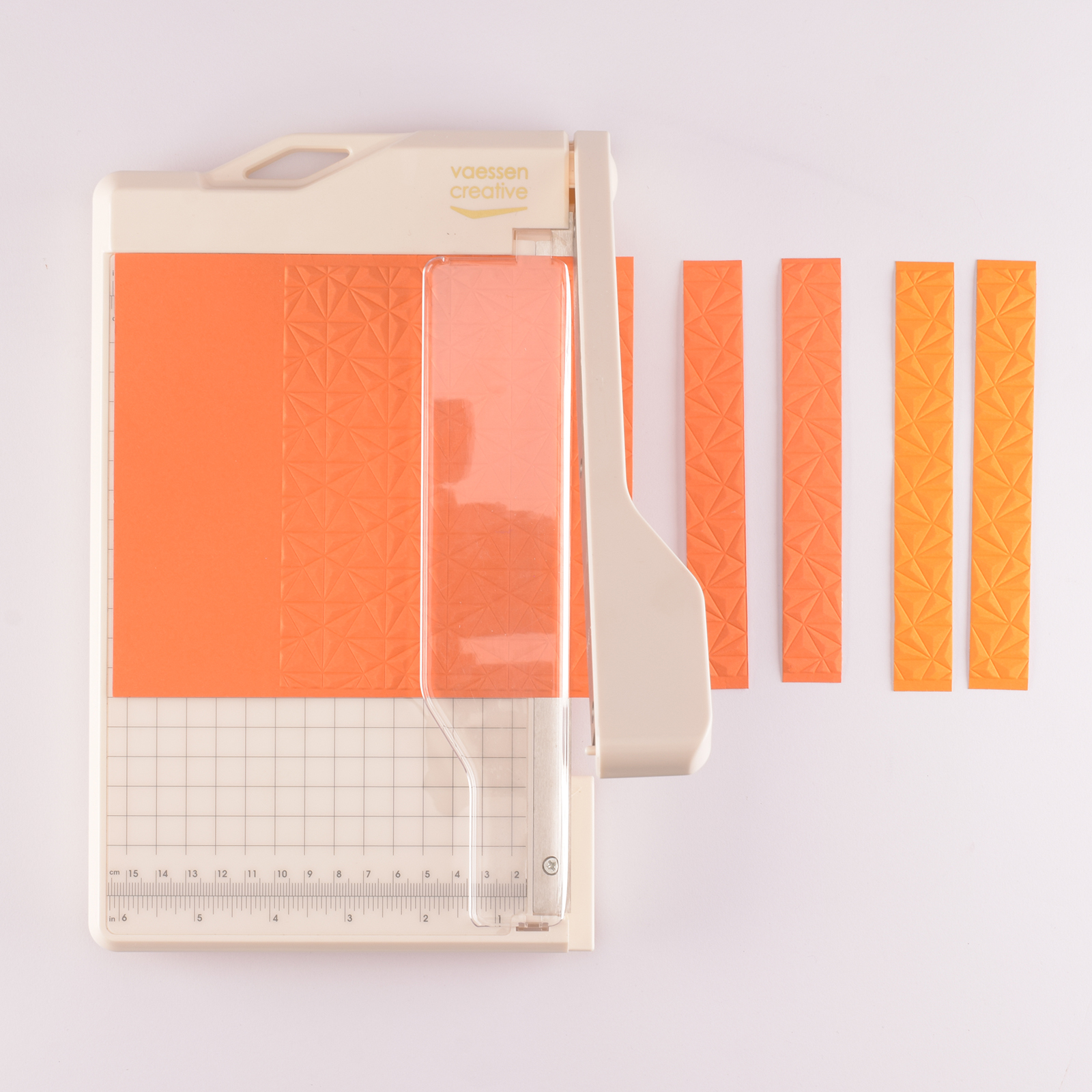You’ll notice some straight lines on the embossed paper. Cut along these lines to create strips about 0.8 inches (2.1 cm) wide. Keep the strips in the order you cut them; this is important for forming the diagonal pattern.