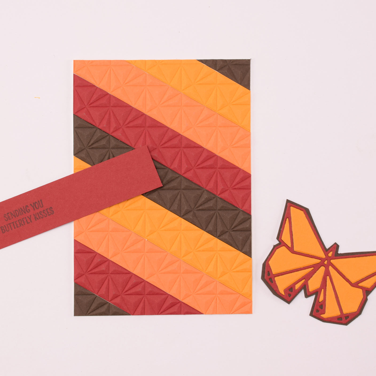 Create a striking card using products from the origami collection by Vaessen Creative. The playful diagonal pattern and geometric butterfly make it perfect for creative card making, without any folding.