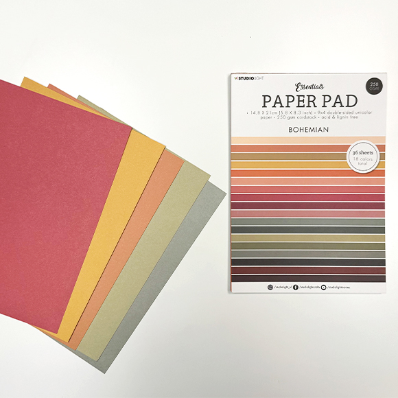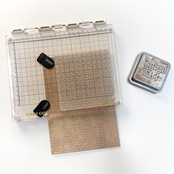 Usa el sello de fondo, la herramienta de estampado y una tinta a tu gusto. Estampa el patrón en cada hoja hasta cubrirla por completo.
