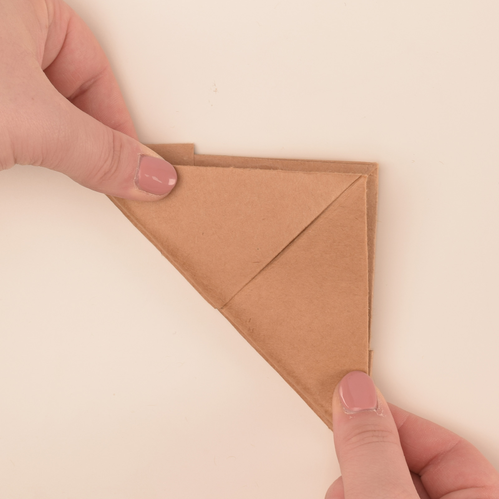 Abre la parte inferior y tira de las esquinas hacia afuera hasta formar un cuadrado.