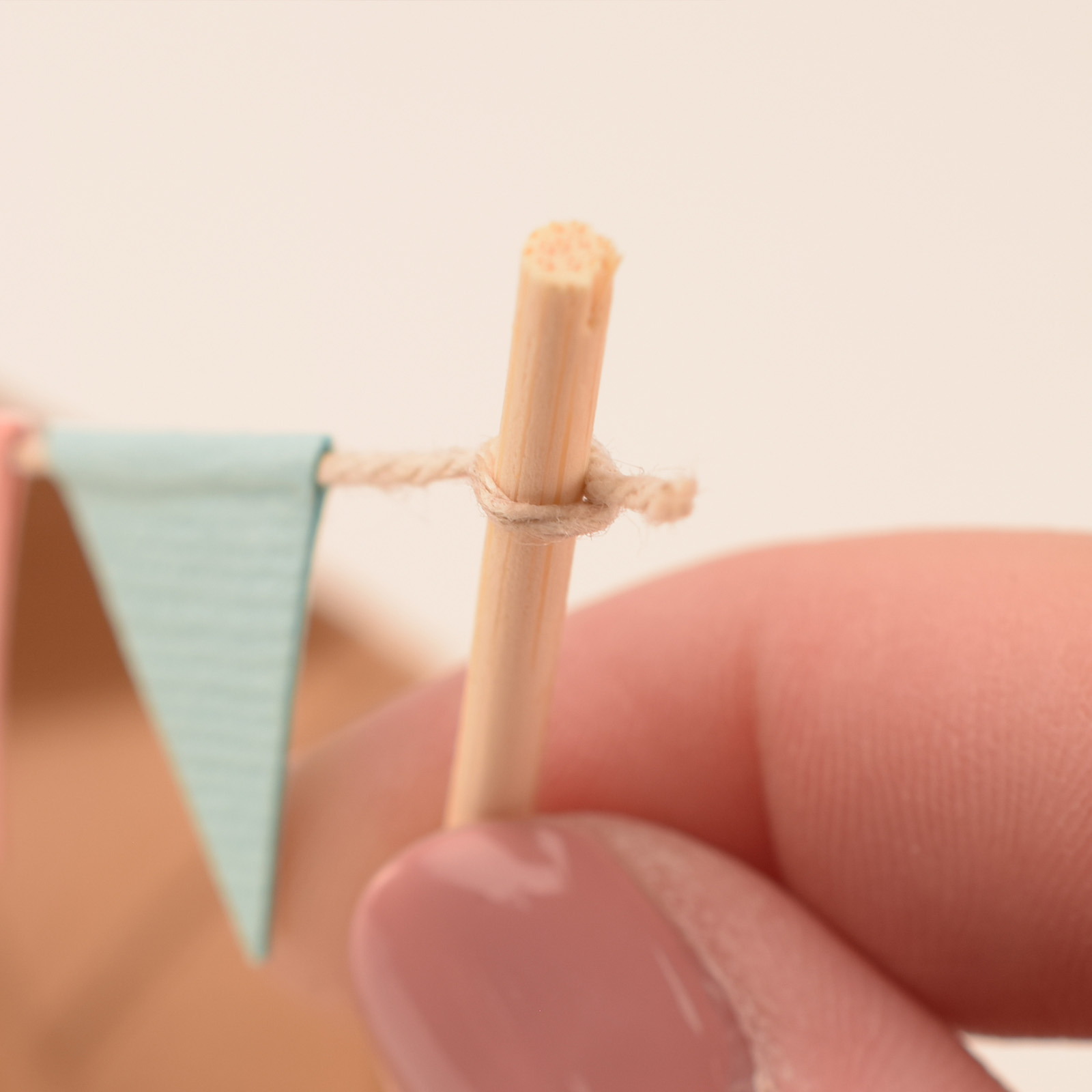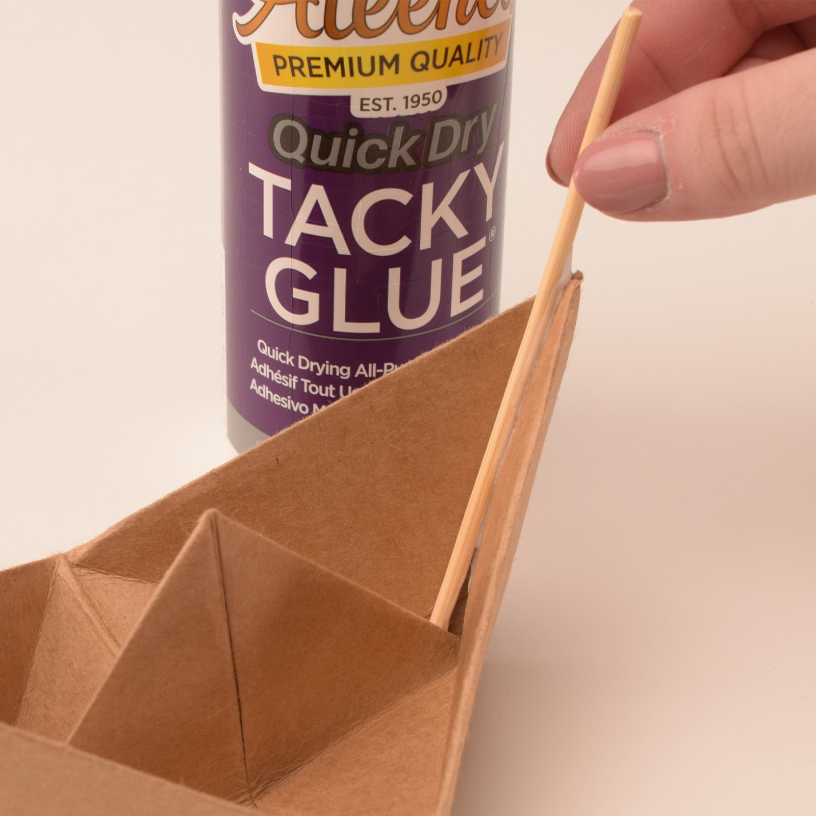 Corta un pincho de madera por la mitad y pega los dos palitos en el interior del barco.