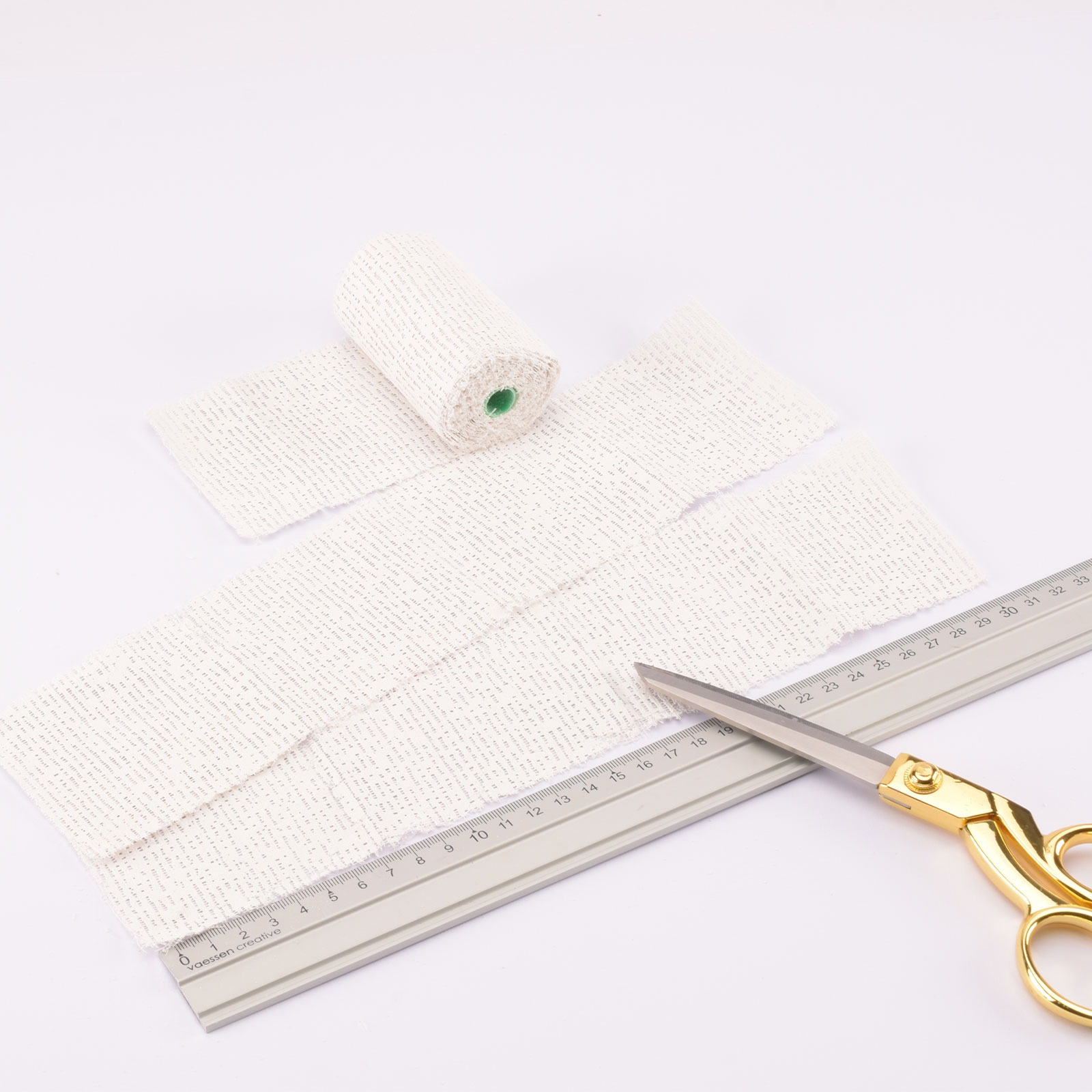Empieza cortando la venda de yeso a medida. Corta tiras de aproximadamente 30 cm de largo. Para cada fantasma necesitas 4 tiras.