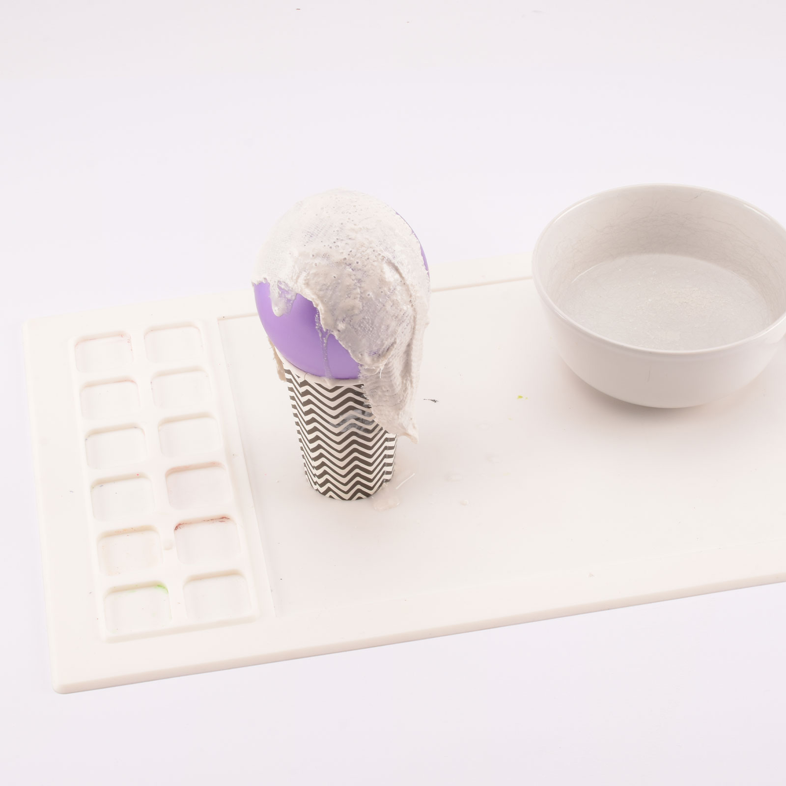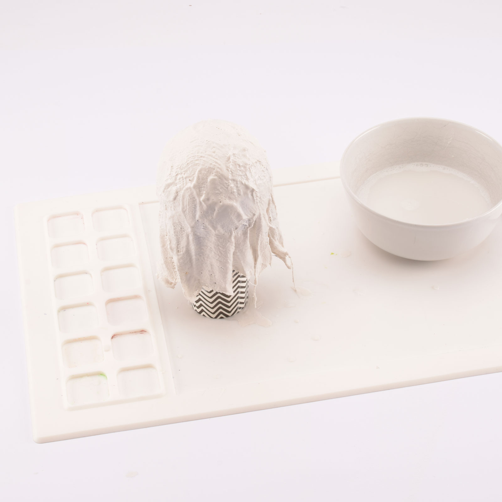 Escurre con cuidado el exceso de agua y coloca la venda sobre el globo. Alísala donde sea necesario.
