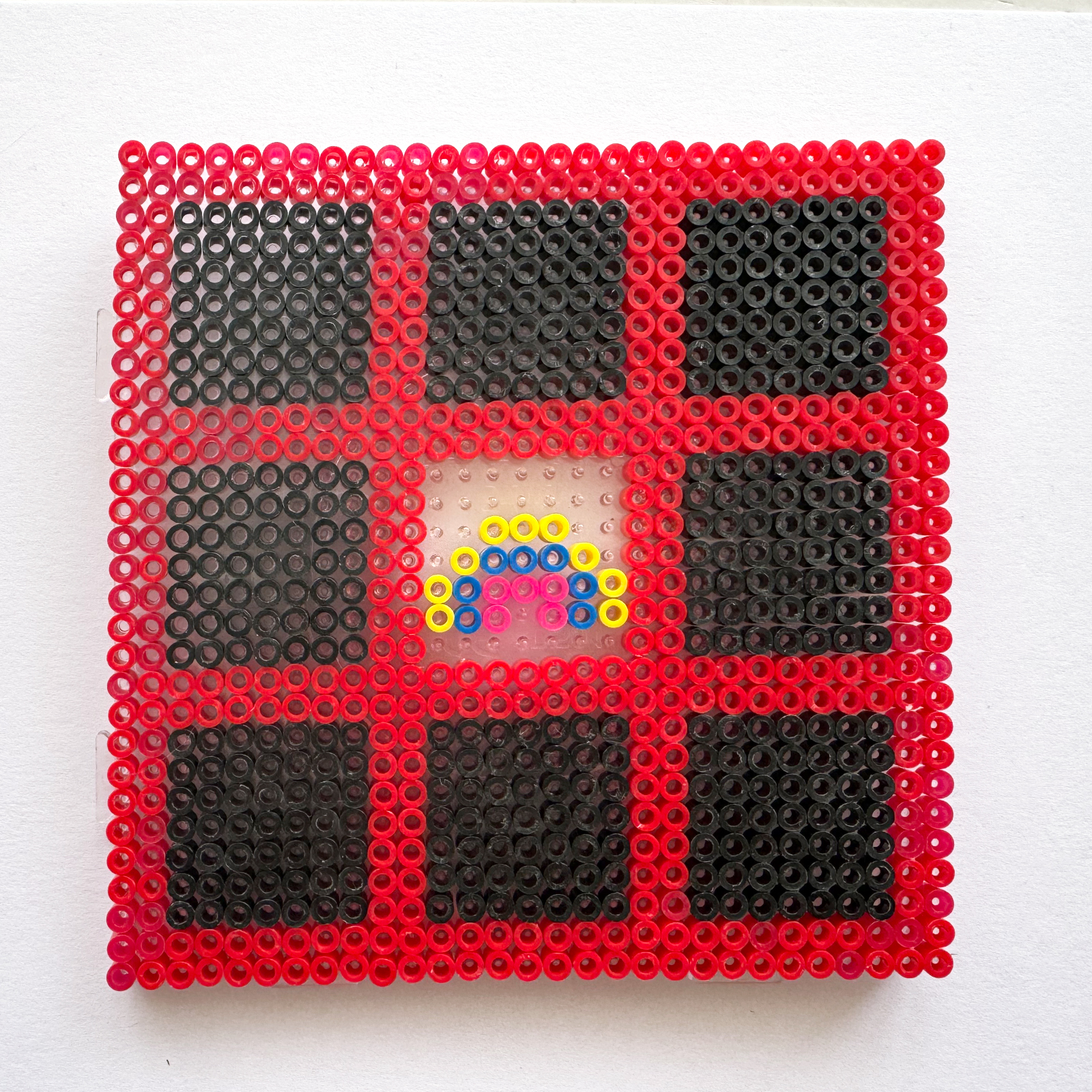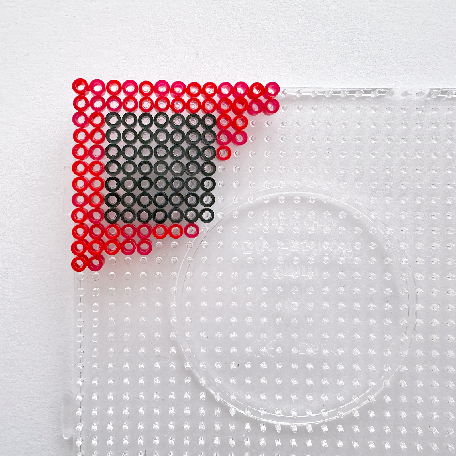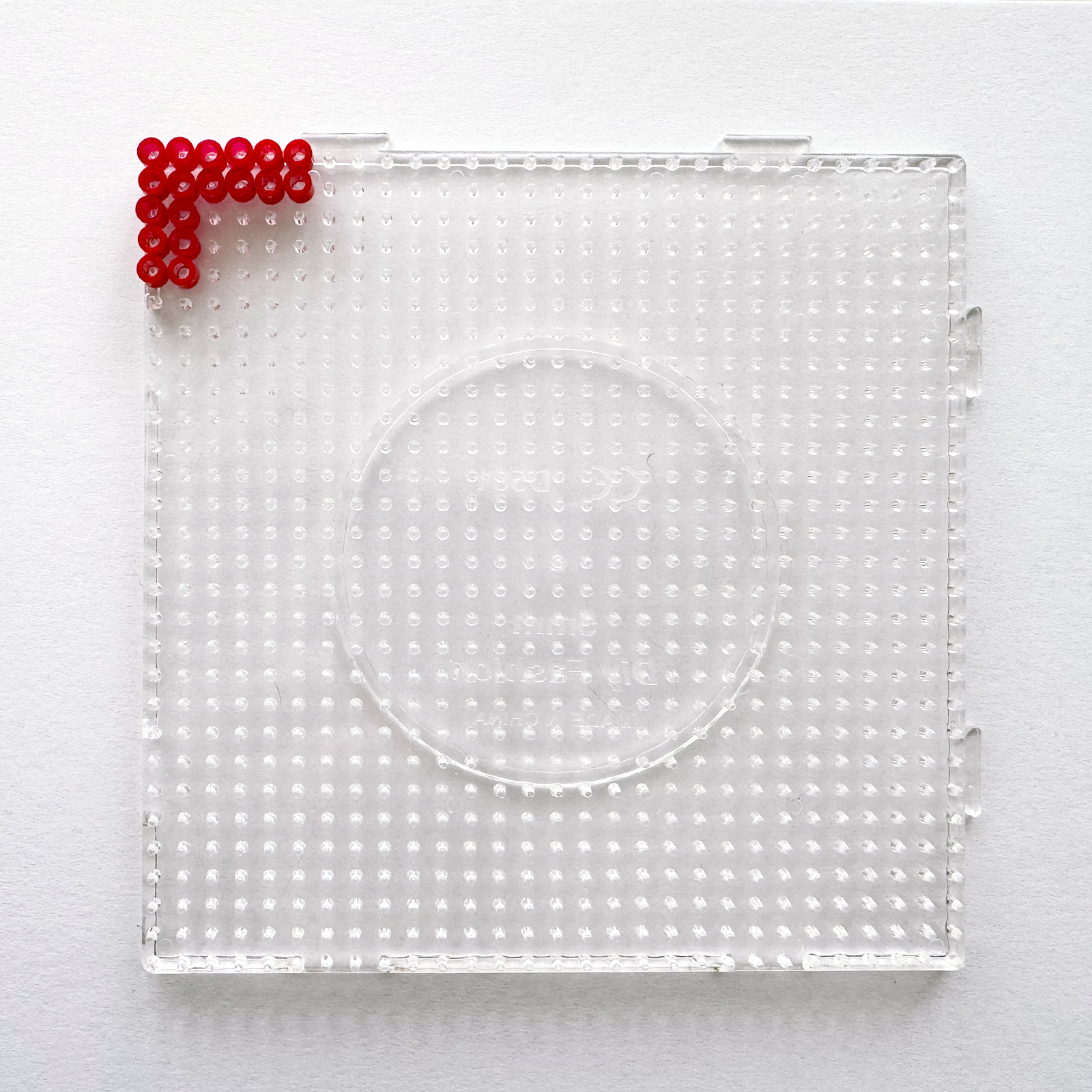 Empieza creando la cuadrícula del juego. Usa una placa base para cuentas para planchar y forma un borde de dos filas de cuentas alrededor.