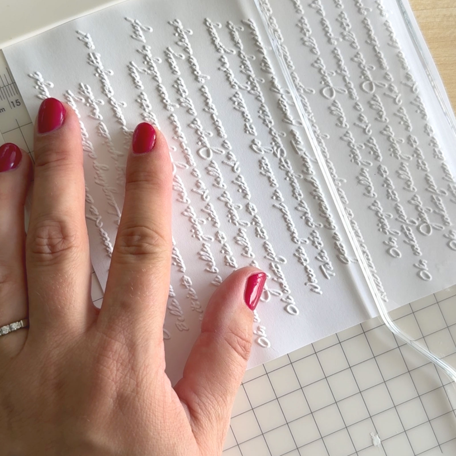 Utilisez le classeur d’embossage avec des étoiles graphiques, insérez-y une autre feuille de papier cartonné blanc et passez-la dans la machine.