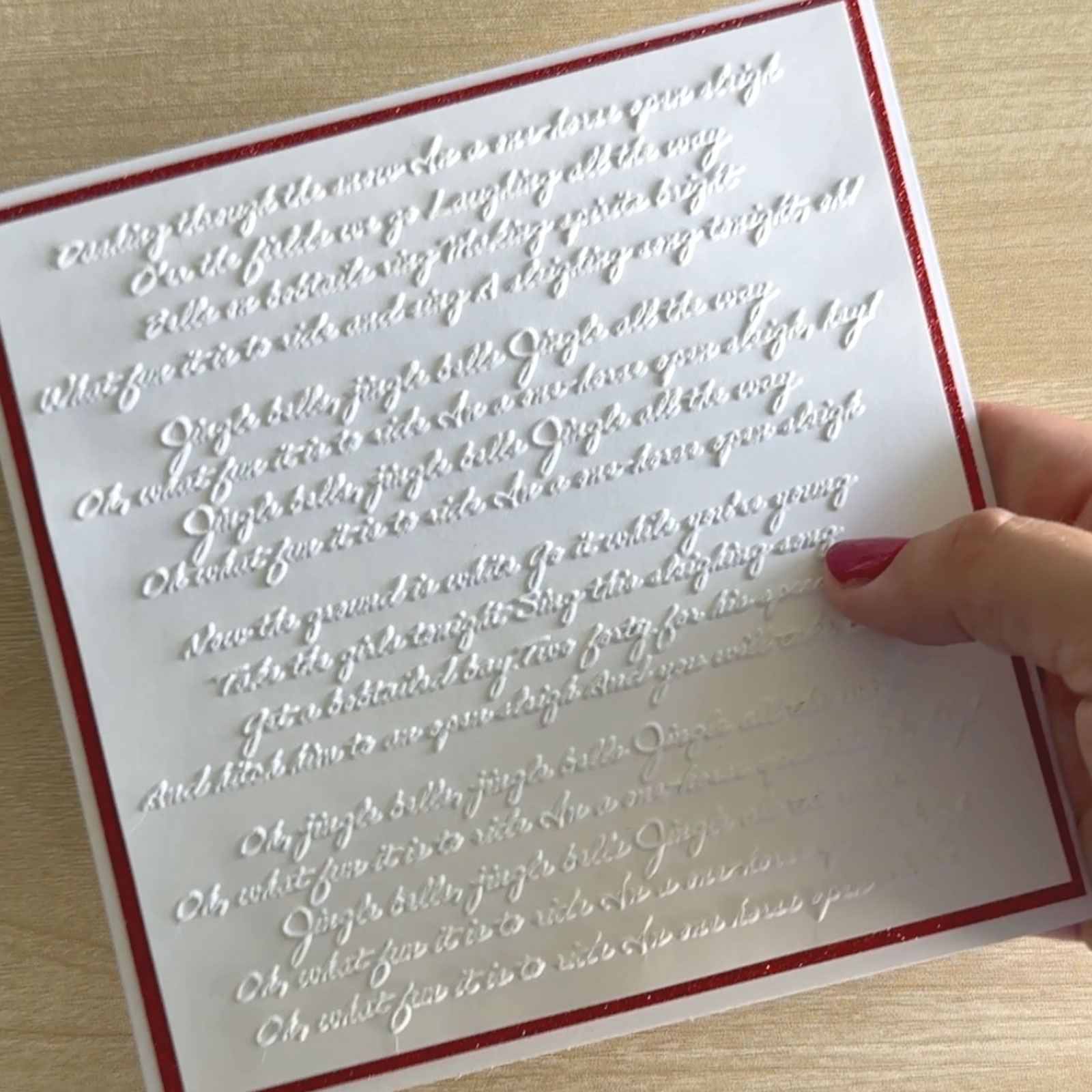 Placez une feuille de papier cartonné blanc dans le classeur d’embossage avec le texte « Jingle Bells » et passez-le dans la machine d’embossage.