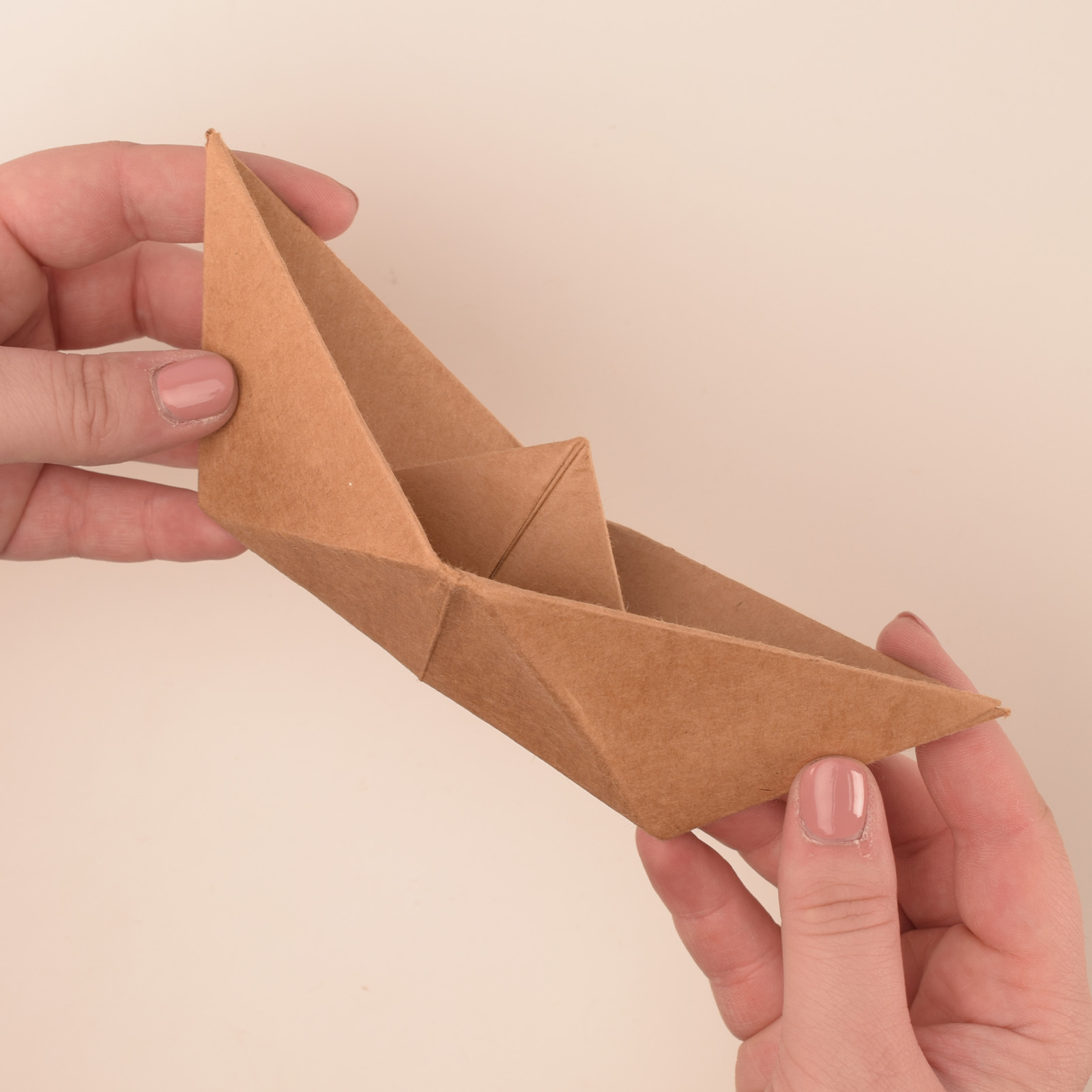 Tirez sur les pointes supérieures pour ouvrir le bateau en papier.