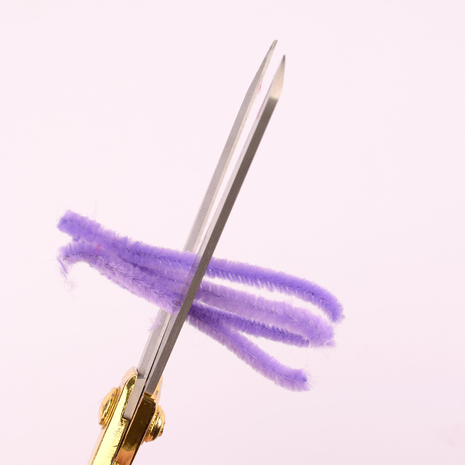 Fleur D : Coupez les fils lilas en 8 morceaux égaux chacun.