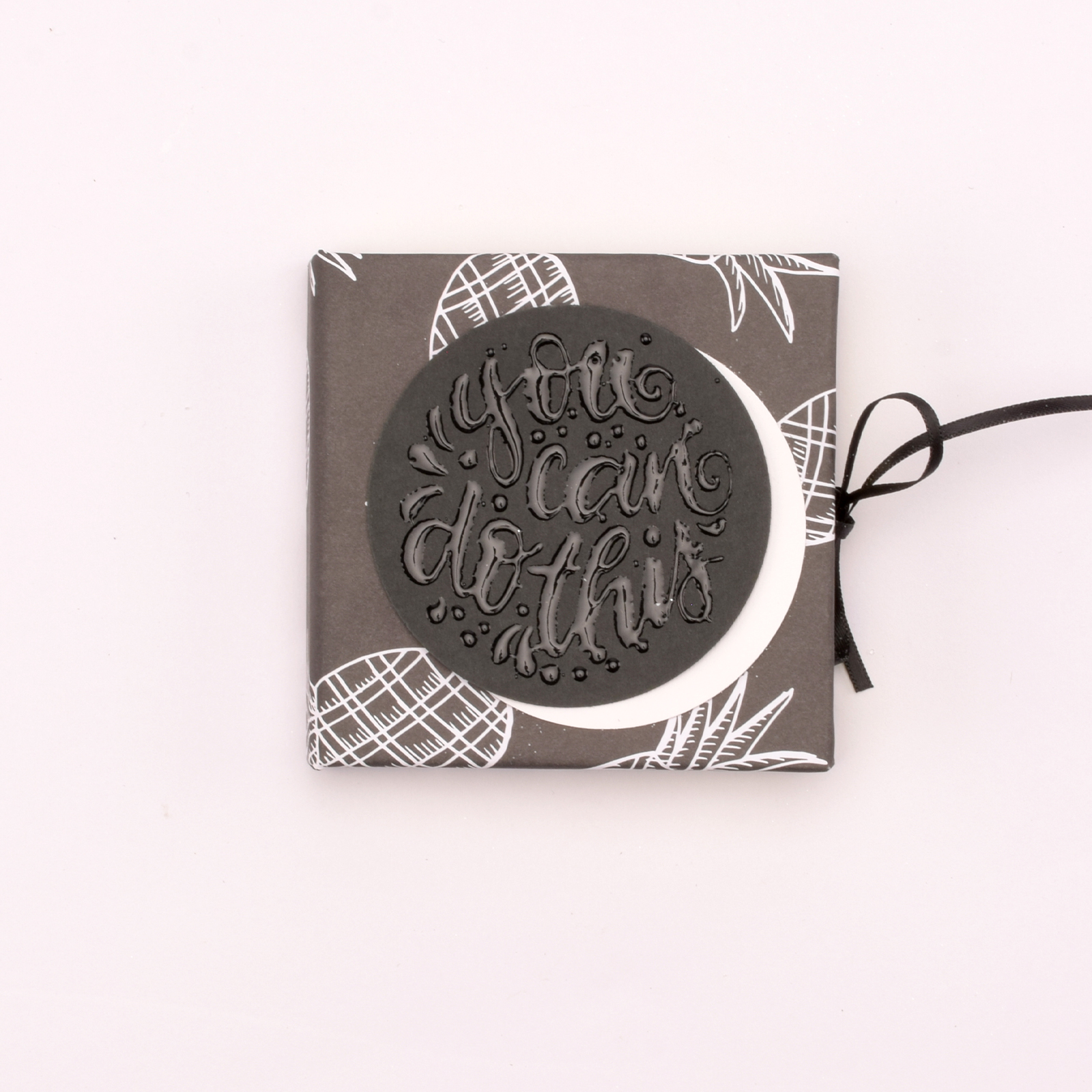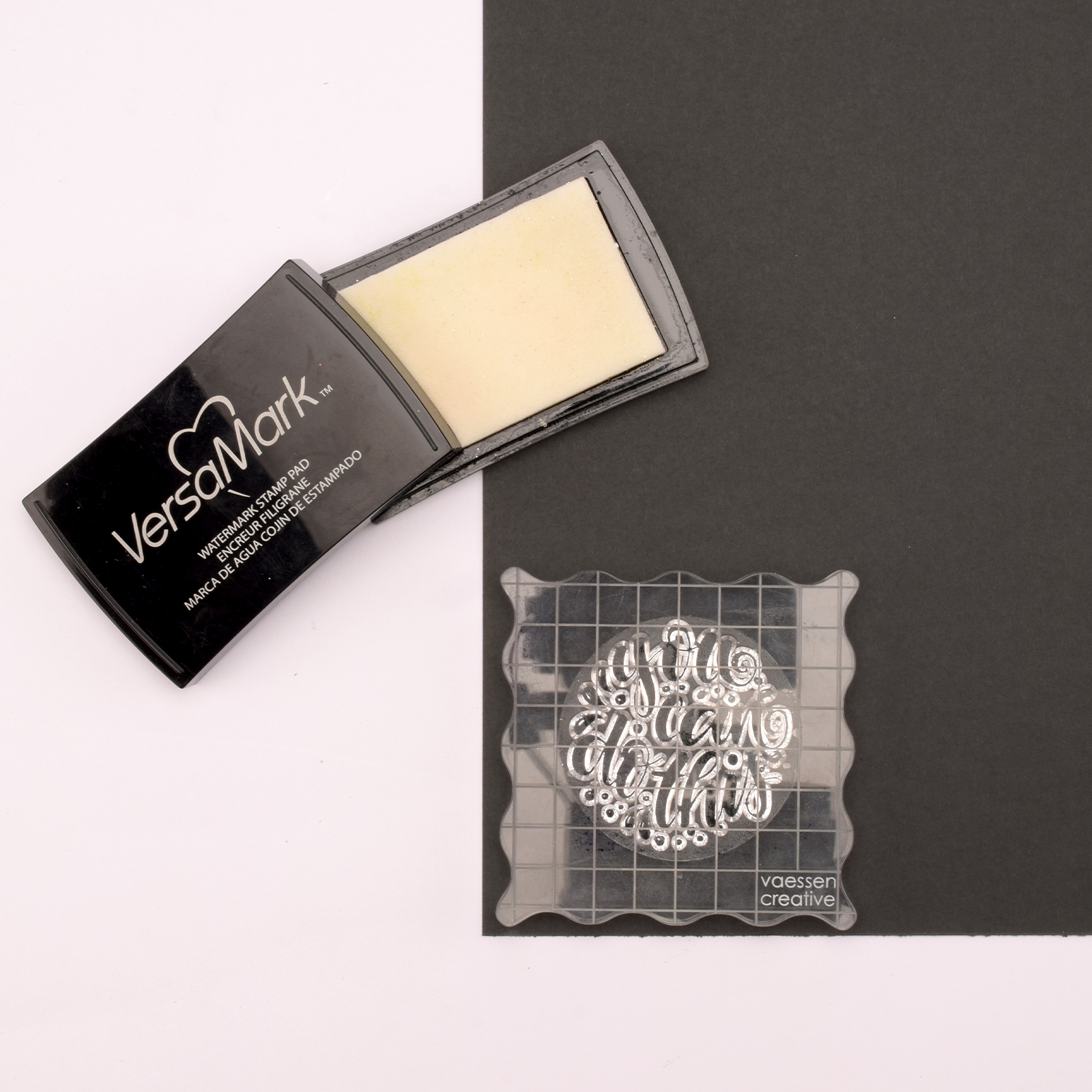 Prenez une feuille de papier noir et tamponnez-y un joli texte avec de l’encre Versamark.