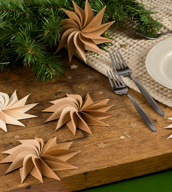 Utilisez une perforatrice goutte pour réaliser cette étoile en papier comme décoration de Noël. Placez-la sur la table, accrochez-la dans le sapin ou enfilez-en plusieurs pour une guirlande festive.
