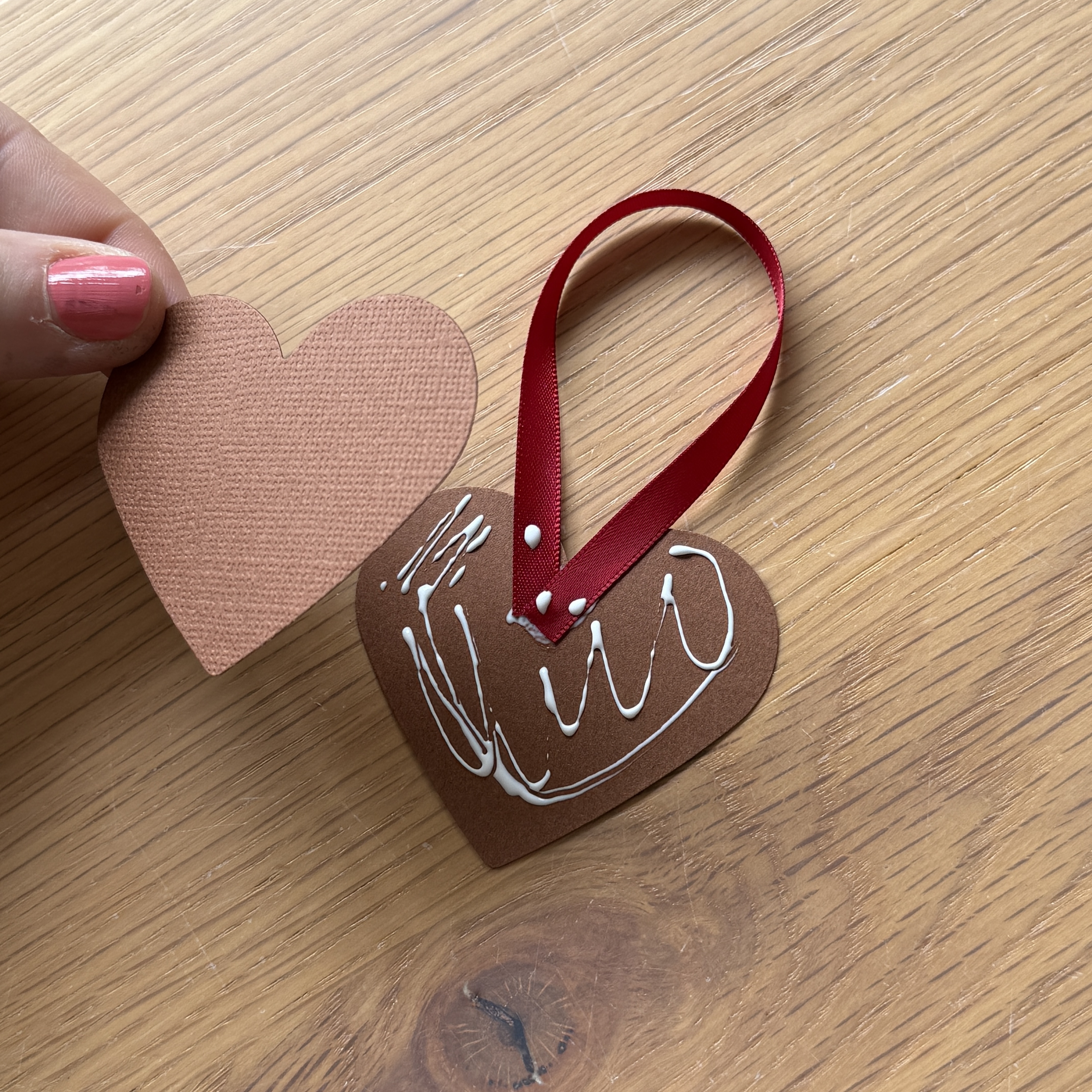 Créez de charmantes décorations de Noël inspirées des biscuits pain d’épices. Avec du papier cartonné, de la peinture 3D et un ruban, réalisez facilement une déco chaleureuse pour le sapin !