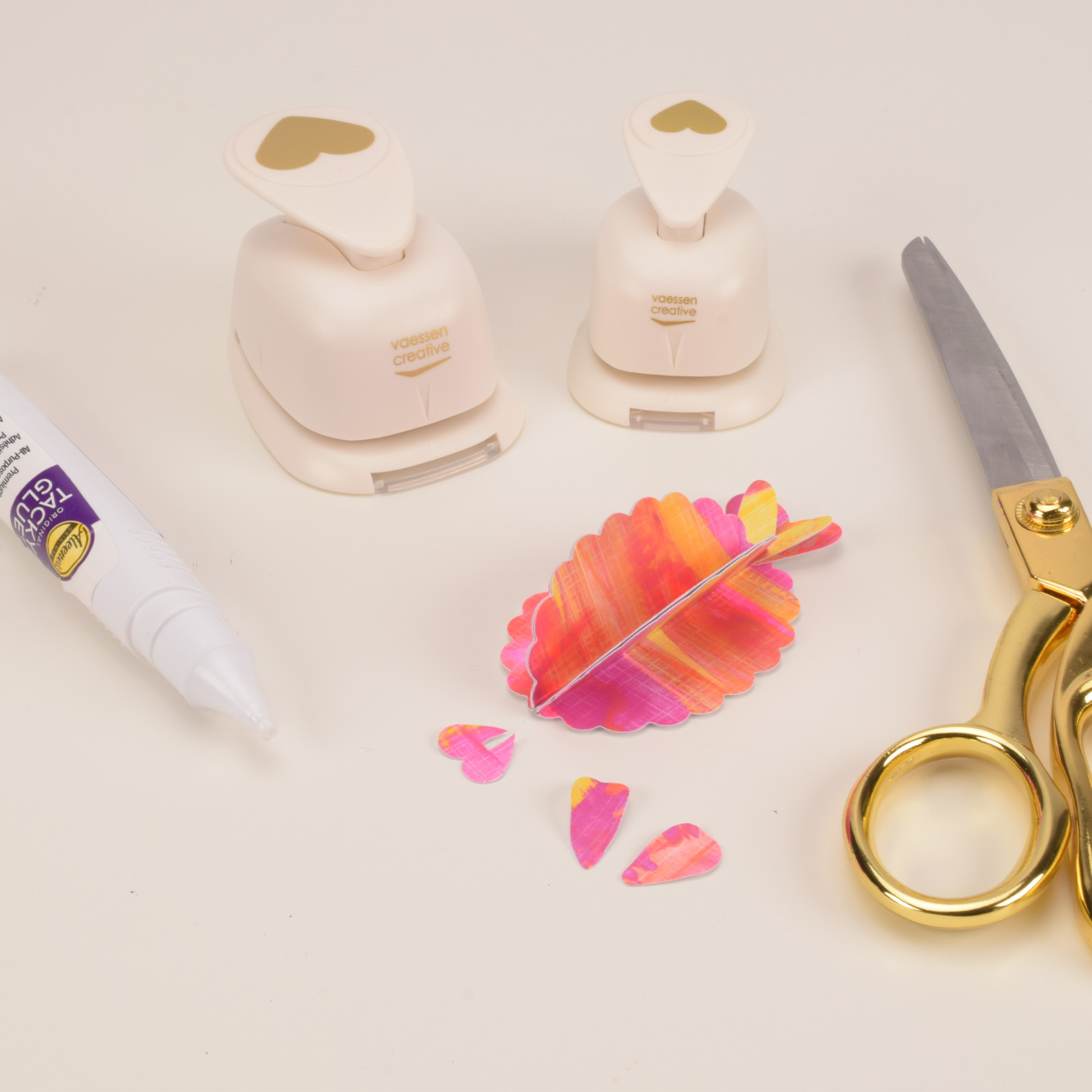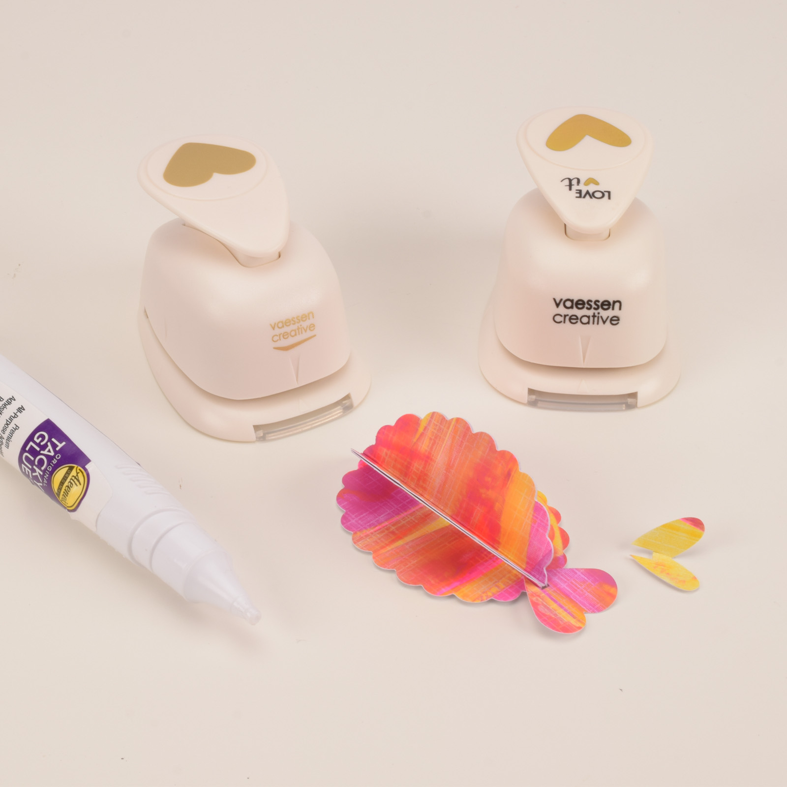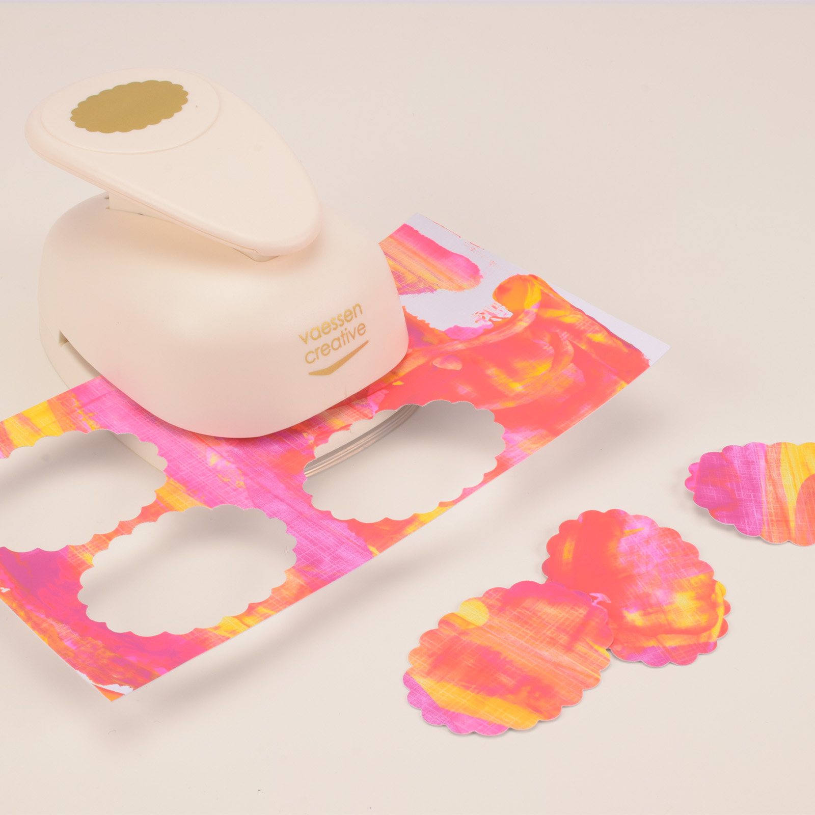 Laissez bien sécher le carton, puis découpez trois ovales festonnés à l’aide d’une perforatrice.