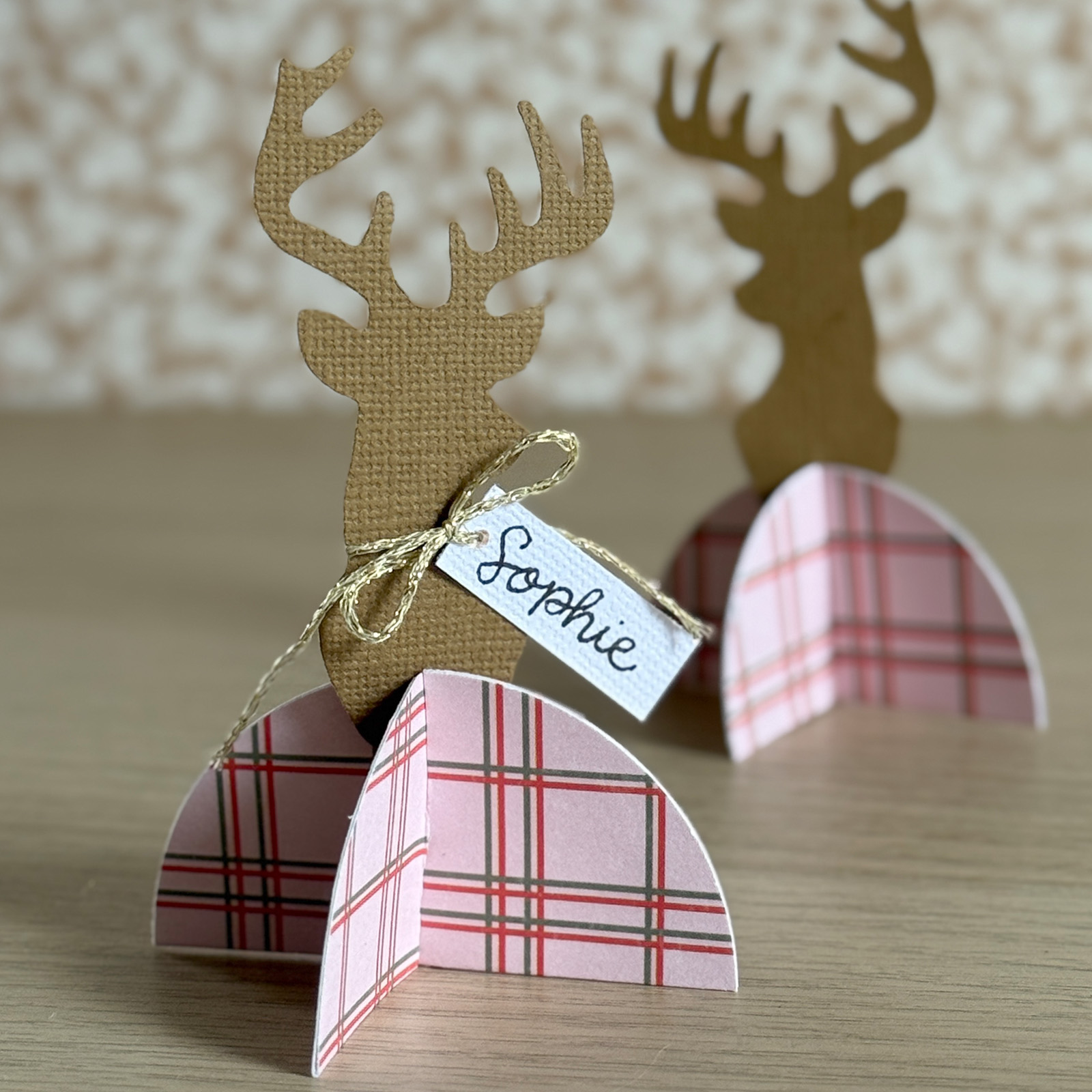 Nouez une ficelle autour du cou du renne et attachez-y une étiquette avec le nom de l’invité.