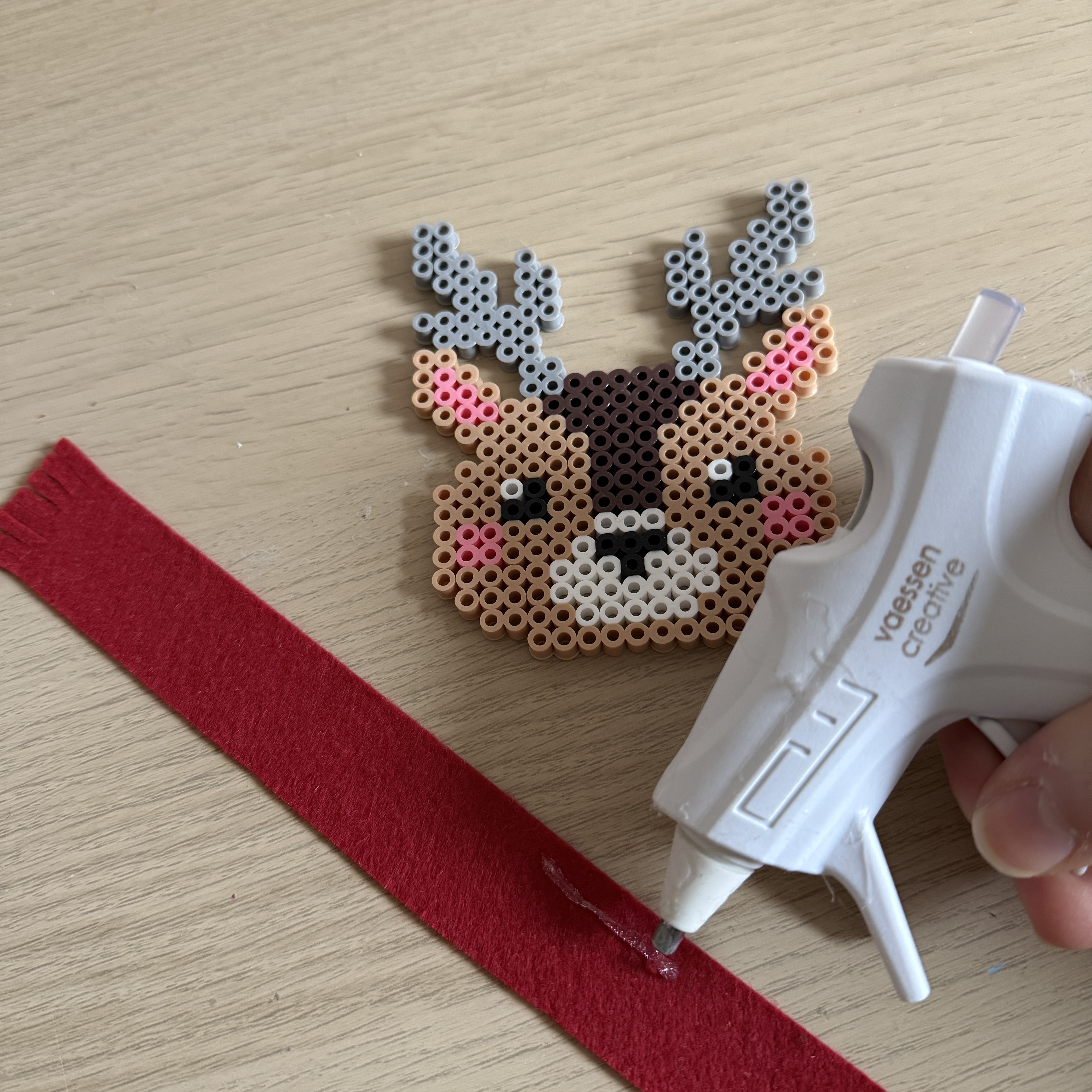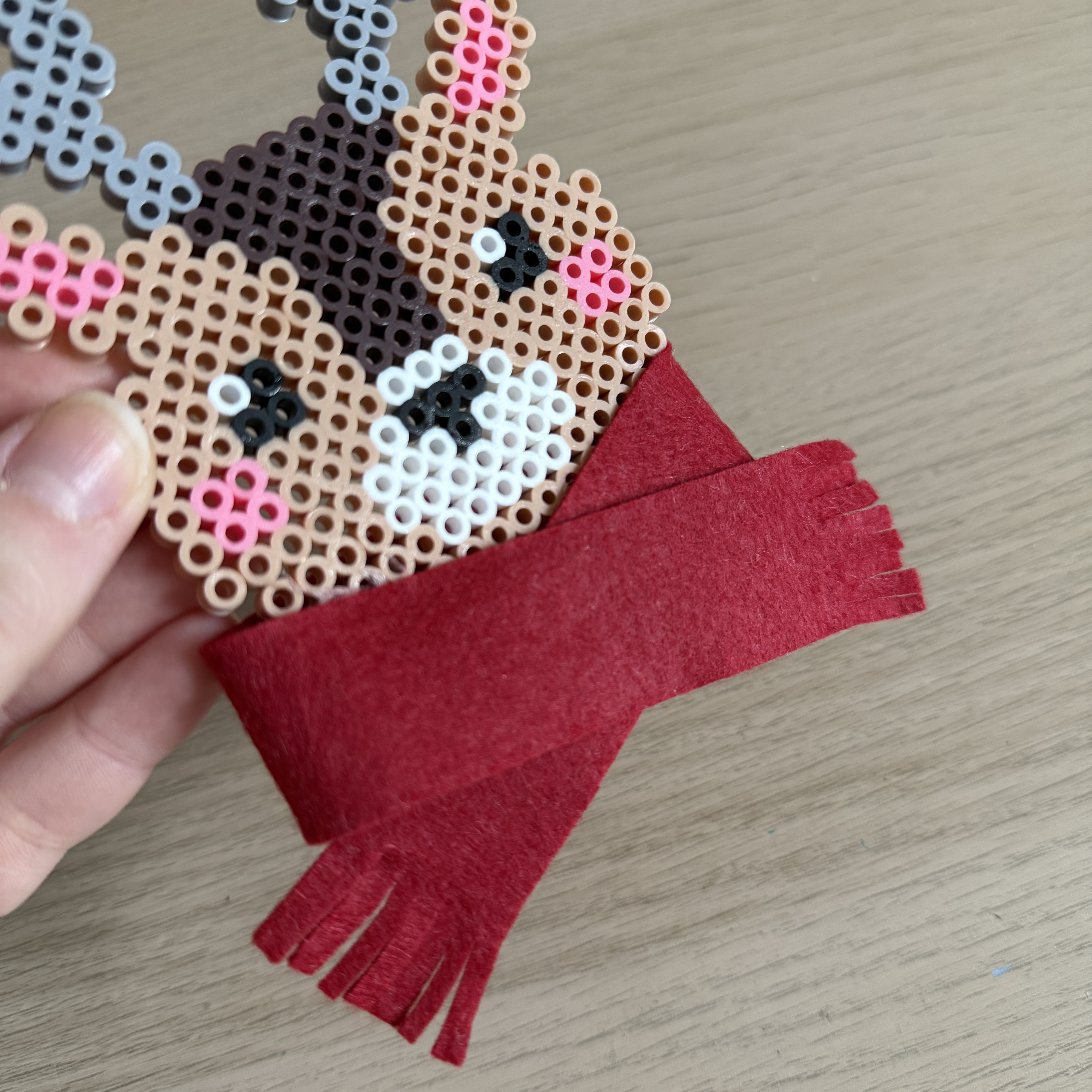 Créez ce renne adorable en perles à repasser avec une écharpe chaude — une activité créative de Noël parfaite pour l’hiver et pour décorer votre sapin.