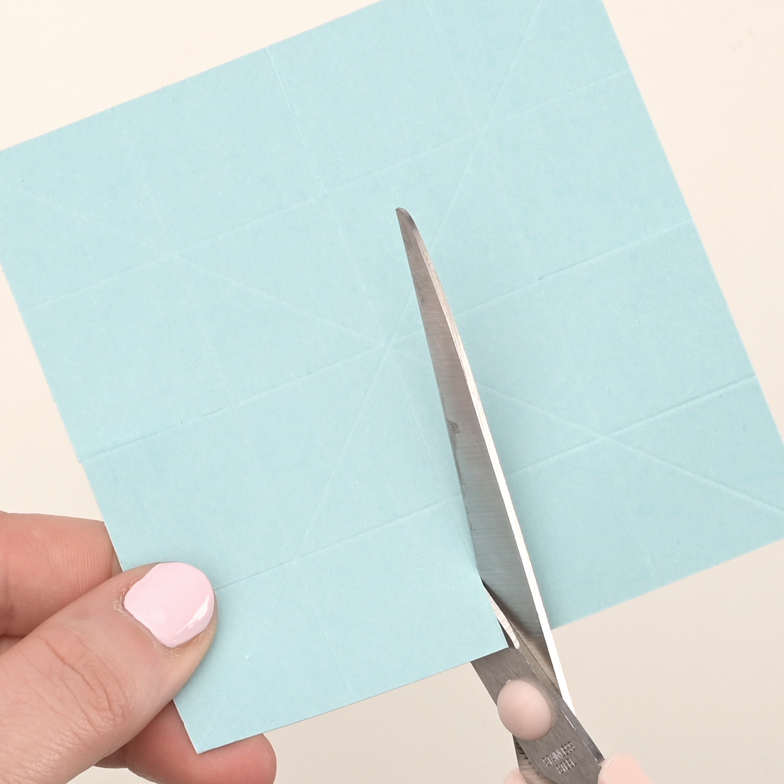 Coupez les lignes de pliage centrales jusqu’à la première ligne de pliage horizontale. Répétez pour tous les côtés.
