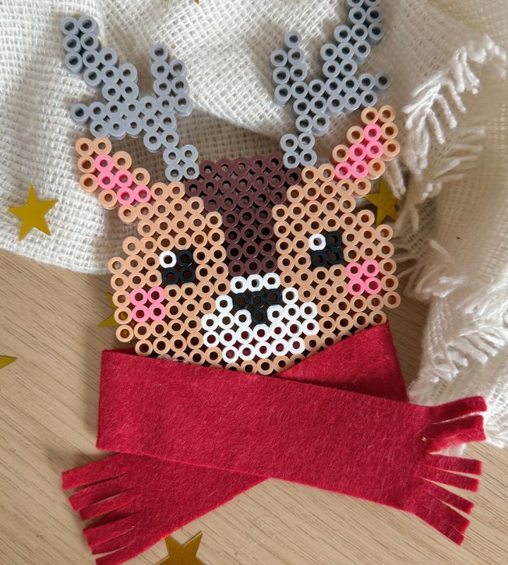 Questa simpatica renna fatta con perline da stirare è un progetto ideale per i giovani creativi. È semplice, colorata e offre molte possibilità per creare motivi e scegliere i colori. La fase di stiratura deve essere fatta da un adulto, ma i bambini possono occuparsi interamente del design. Questa renna è perfetta come ornamento natalizio, calamita o decorazione per la cameretta.