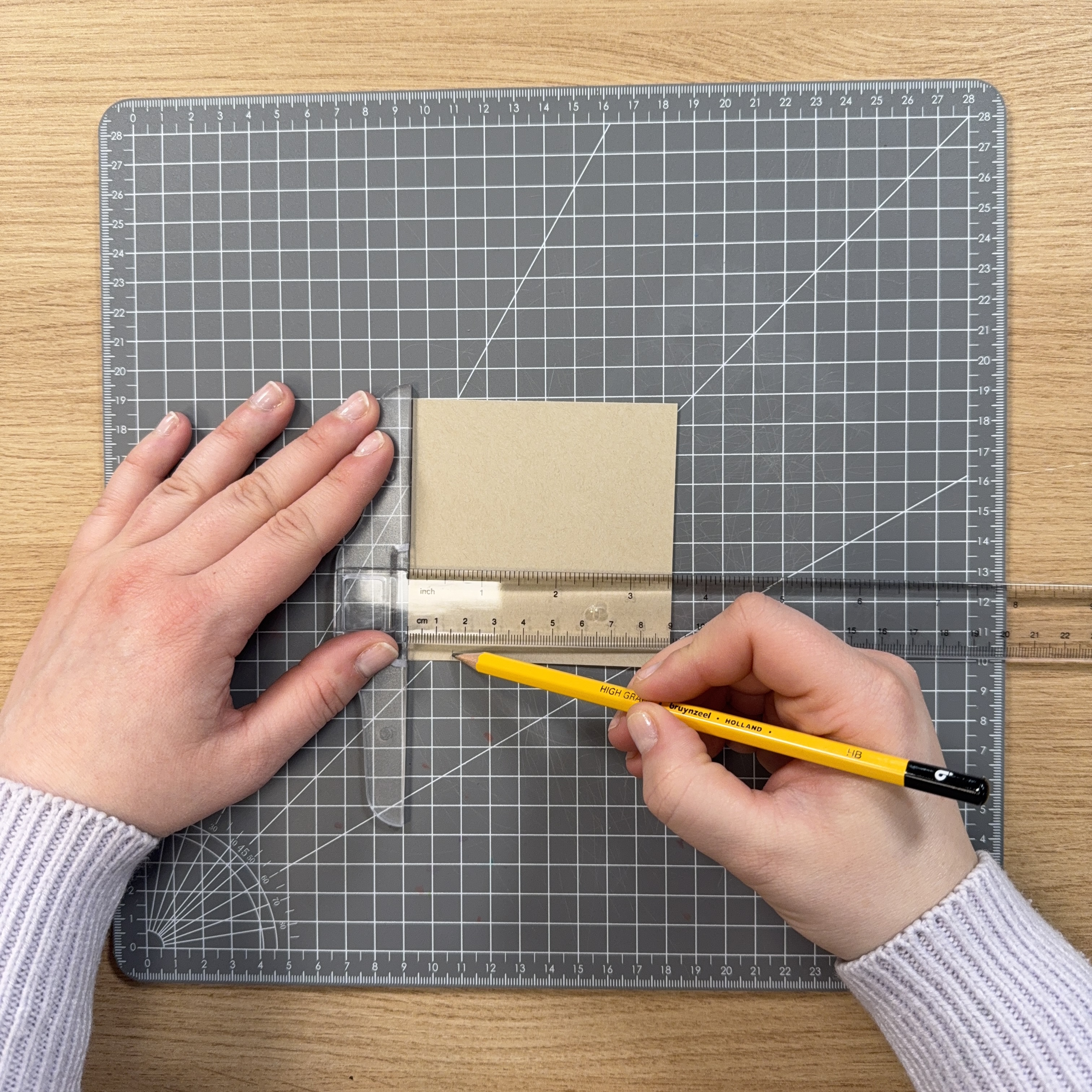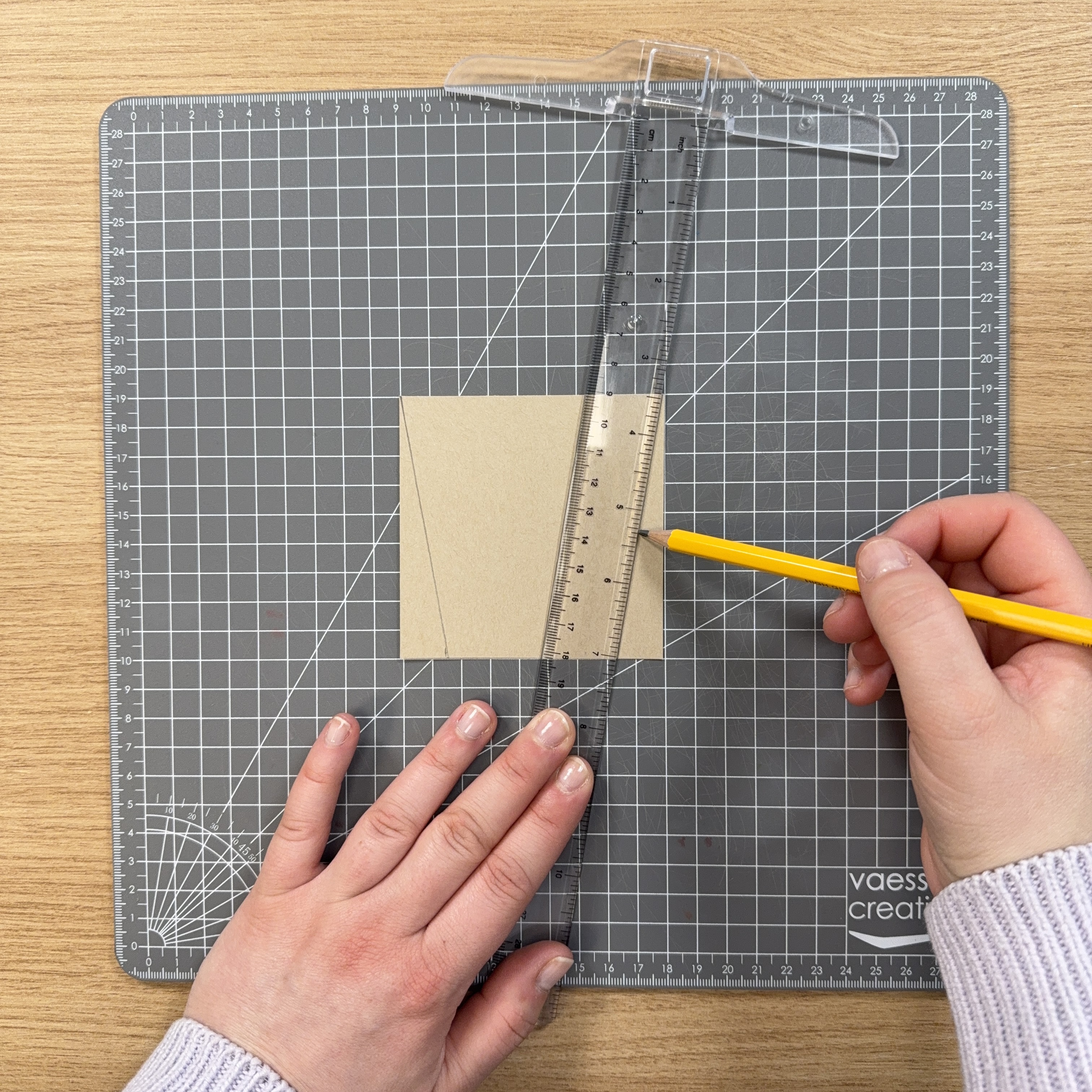 Traccia delle linee dagli angoli superiori fino ai punti segnati in basso, su entrambi i fogli.