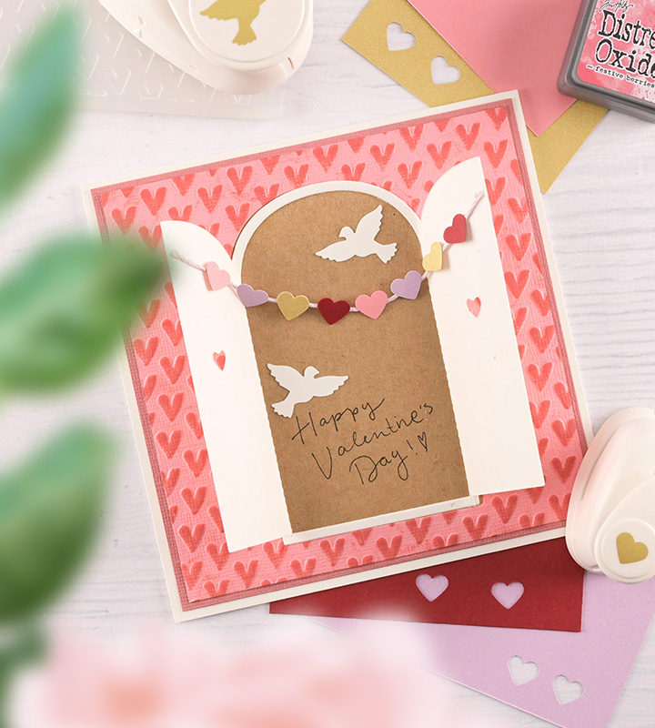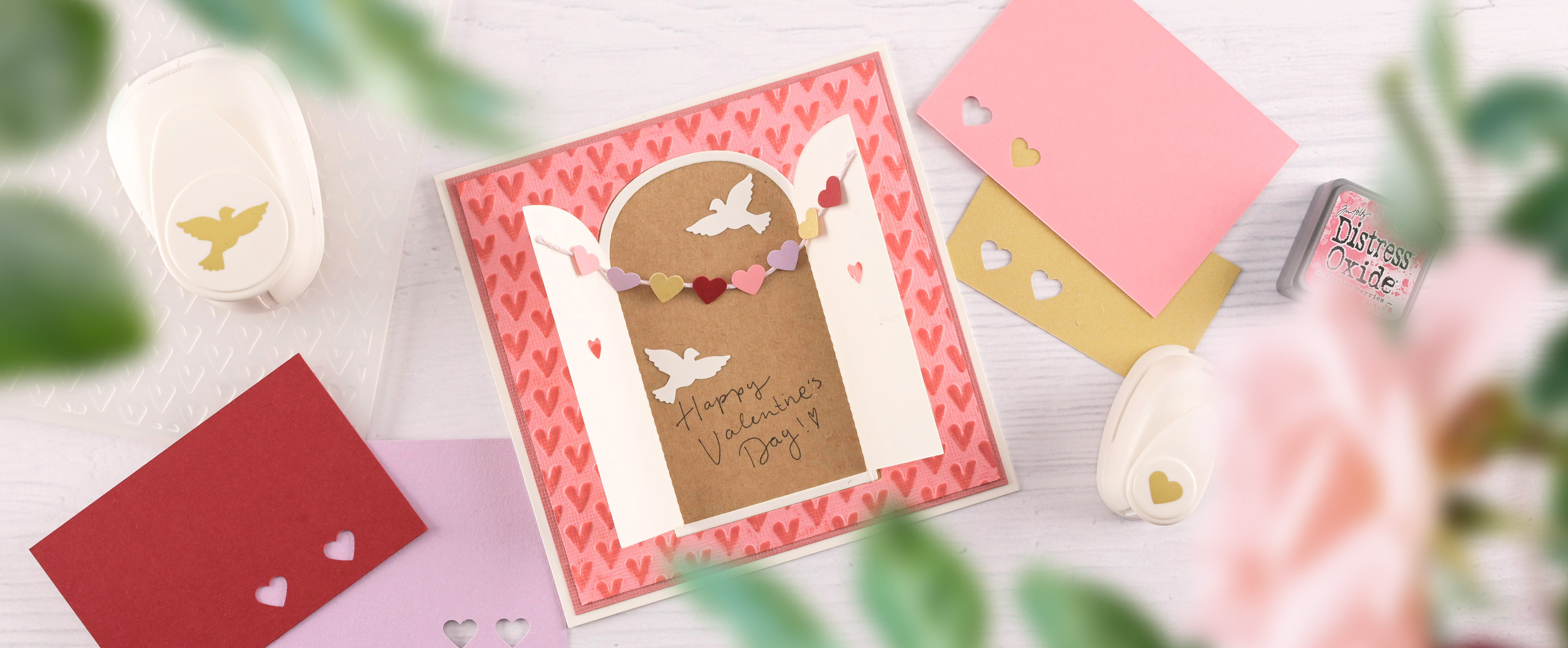 Crea questo romantico biglietto di San Valentino con uno sportellino a sorpresa e sorprendi qualcuno con un messaggio personale e pieno d’amore. Questo progetto creativo è perfetto per il fai da te di San Valentino e mostra come, con carta, livelli e piccoli dettagli, sia possibile realizzare un biglietto che cattura davvero l’attenzione. Grazie all’effetto sorpresa e allo spazio per un messaggio scritto a mano, regali qualcosa di unico e speciale alla tua persona del cuore. Ideale per chi ama creare in occasione di San Valentino.