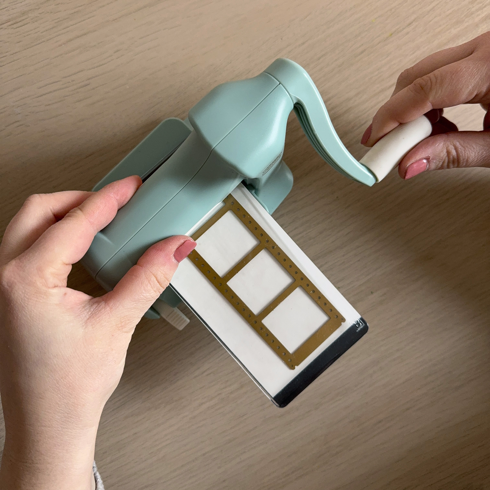 Fustella la striscia fotografica dal set Vintage Filmstrip (3625-0212) usando una macchina da taglio ed embossing.