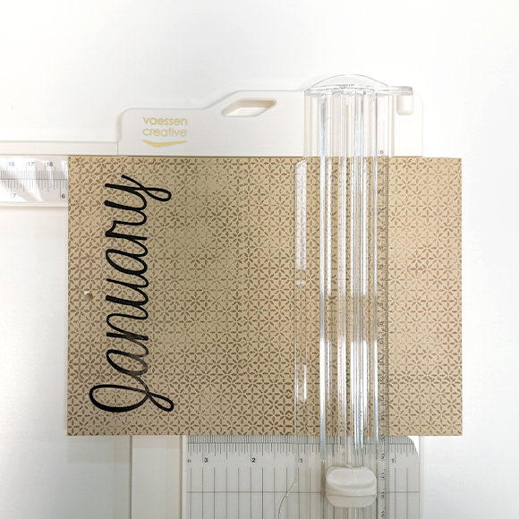 Usa il foglio di adesivi Kaisercraft per applicare gli adesivi dei mesi sui 12 fogli.