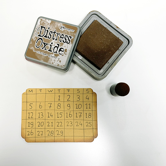 Inchiostra i bordi con un dauber per un effetto vintage e incolla le griglie sui mesi.