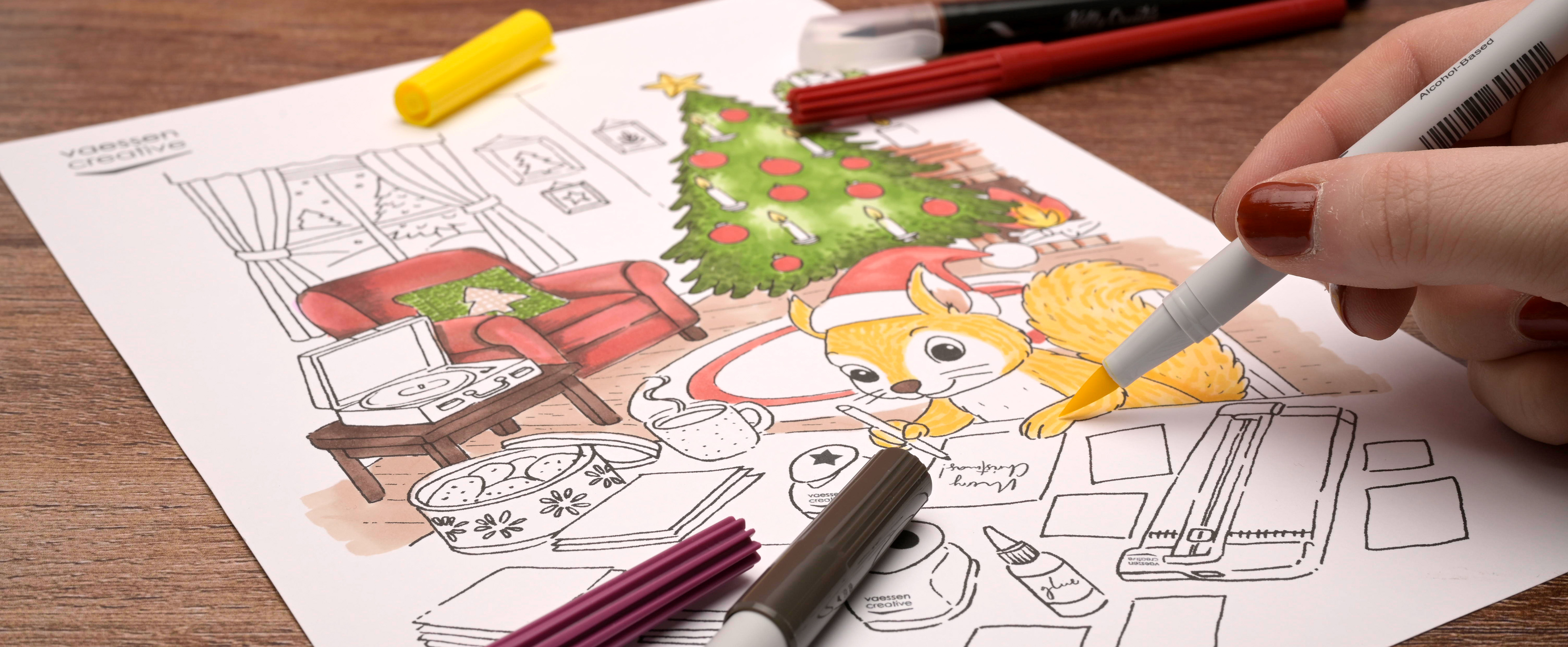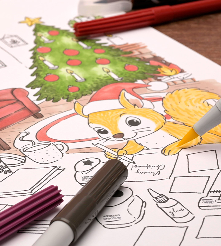 Questo simpatico scoiattolo è impegnato nel suo accogliente laboratorio di Natale! Colora l’albero, i regali e tutti i materiali creativi per dare vita alla scena. Un disegno perfetto per chi ama il Natale e i lavoretti creativi.