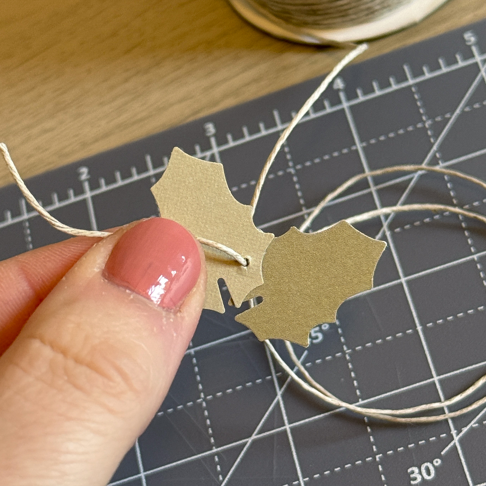 Rendi i tuoi regali di Natale ancora più festosi con un nastro fatto a mano con foglie di agrifoglio in cartoncino. Aggiungi etichette di Natale gratuite per un tocco personale di fai-da-te natalizio!
