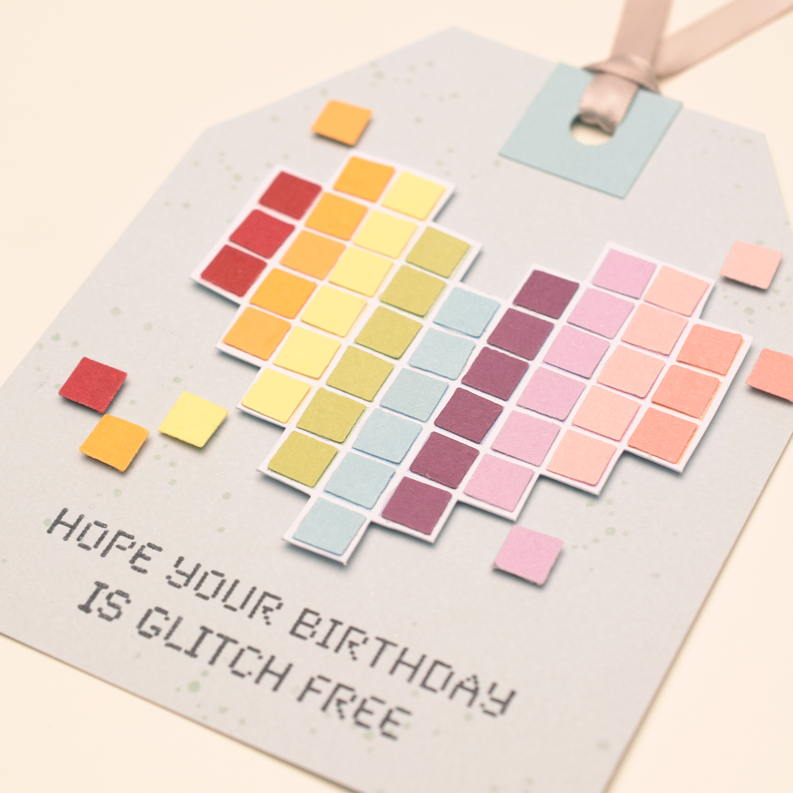 Incolla la tua pixel art su biglietti, etichette, sacchetti regalo o pagine di scrapbooking. È divertente anche aggiungere pixel sparsi fuori dalla figura per creare un effetto “glitch”.