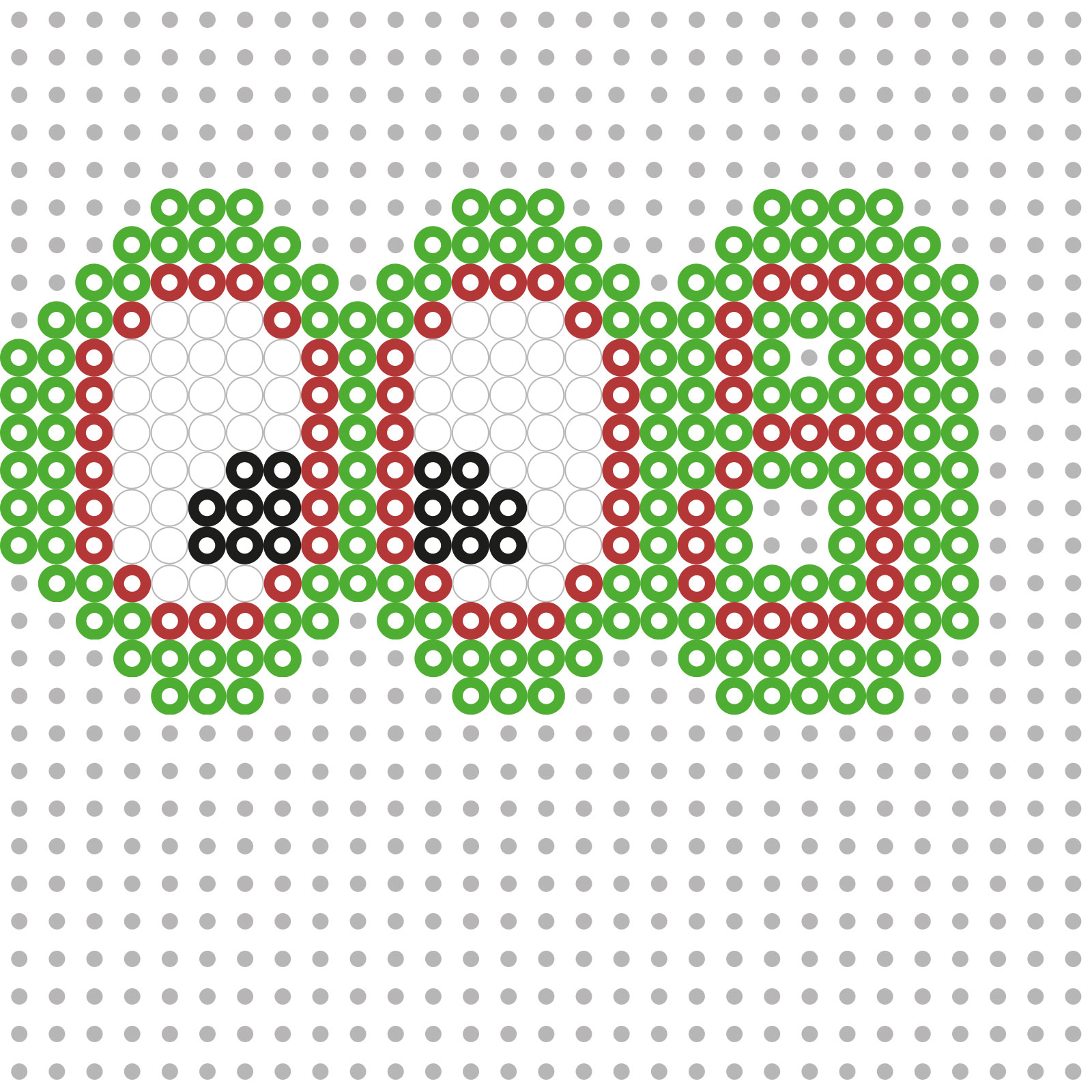 Voor de tekst "BOO" gebruik je tweekleurige groene en oranje strijkkralen, en voor het midden effen zwarte en witte strijkkralen. Leg de kralen neer volgens de afbeelding. Let op: leg de tekst in spiegelbeeld.
