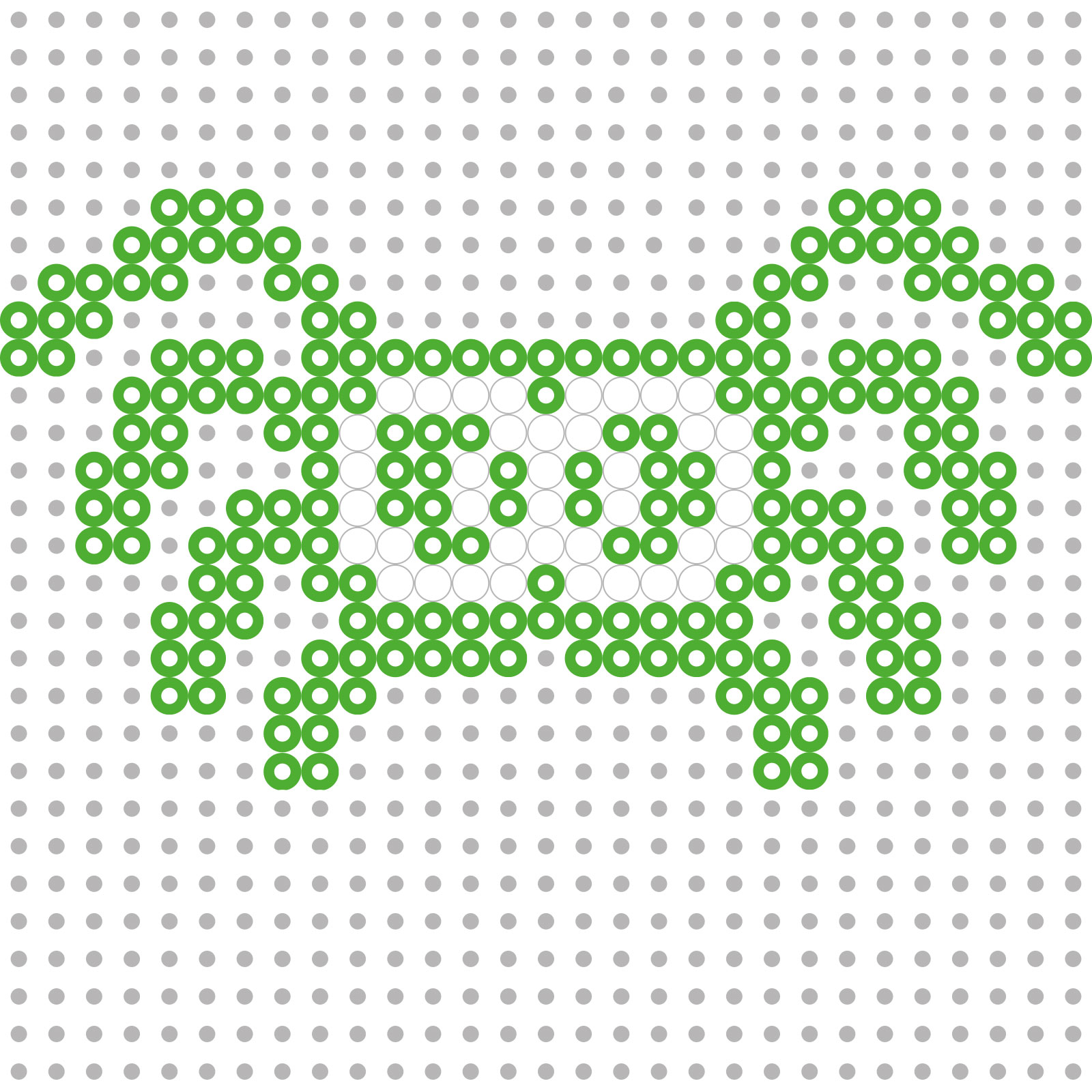 Voor de spin gebruik je groen-paarse en effen witte strijkkralen. Bekijk ook hier de afbeelding om het patroon goed te leggen.