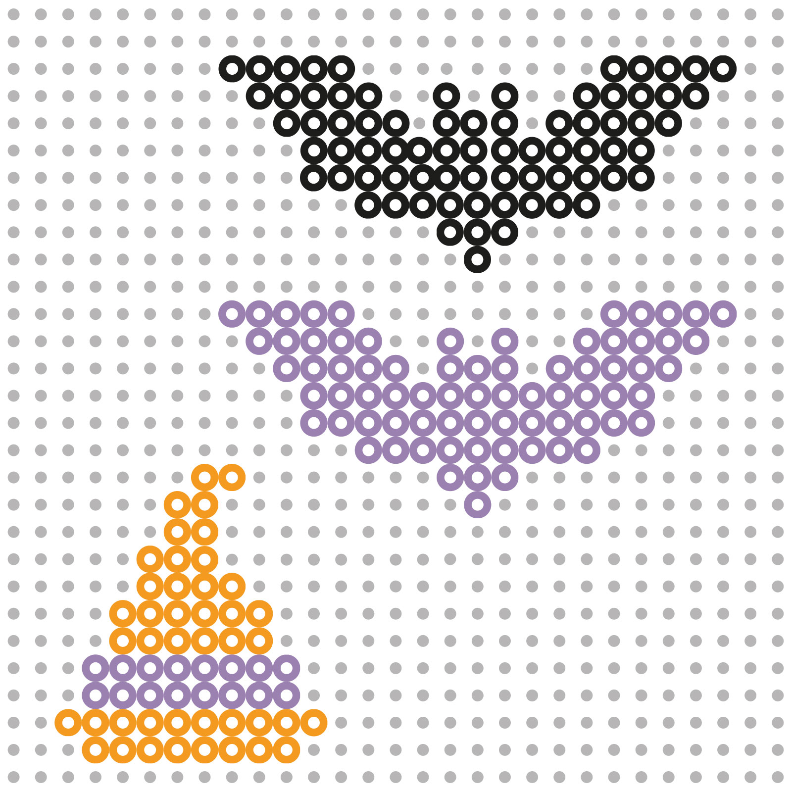 Begin met het maken van de pompoen. Gebruik hiervoor tweekleurige oranje en effen zwarte strijkkralen. Leg de kralen volgens het patroon op het strijkkralen onderbord, zoals je op de afbeelding ziet.