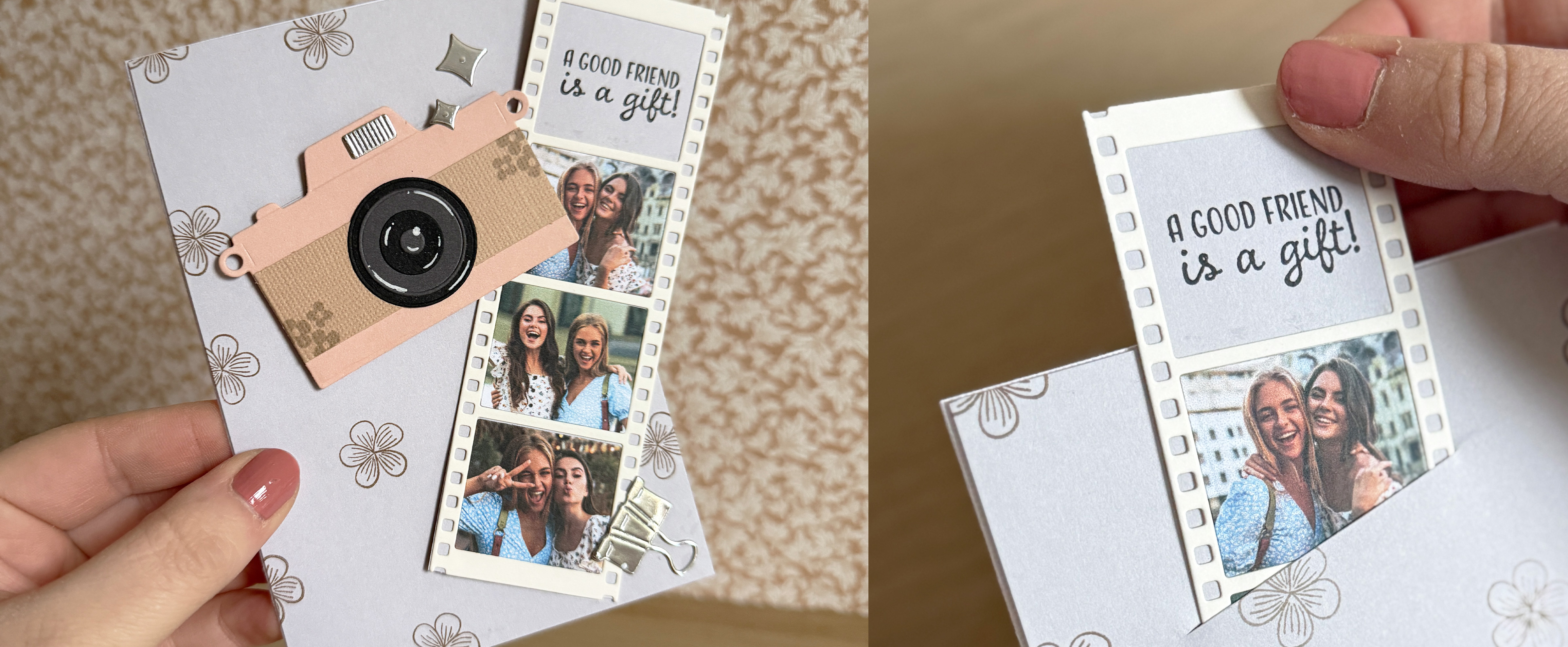 Print je favoriete foto's en maak deze originele kaart waarbij een fotostrip tevoorschijn komt. Leuk als persoonlijk cadeautje of om iemand extra te verrassen!