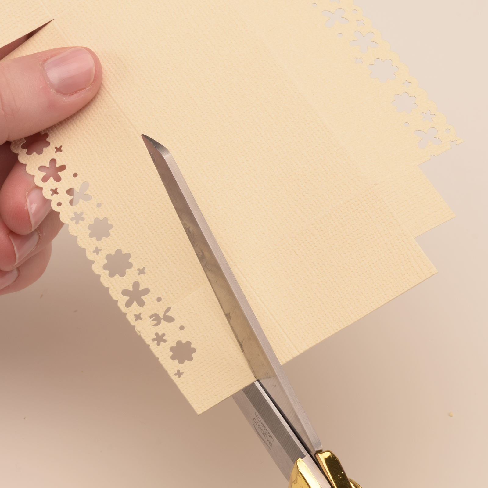 Ril de eerste strook op 3, 15, 25 en 27,5 cm. De tweede strook ril je op 15,25 cm.