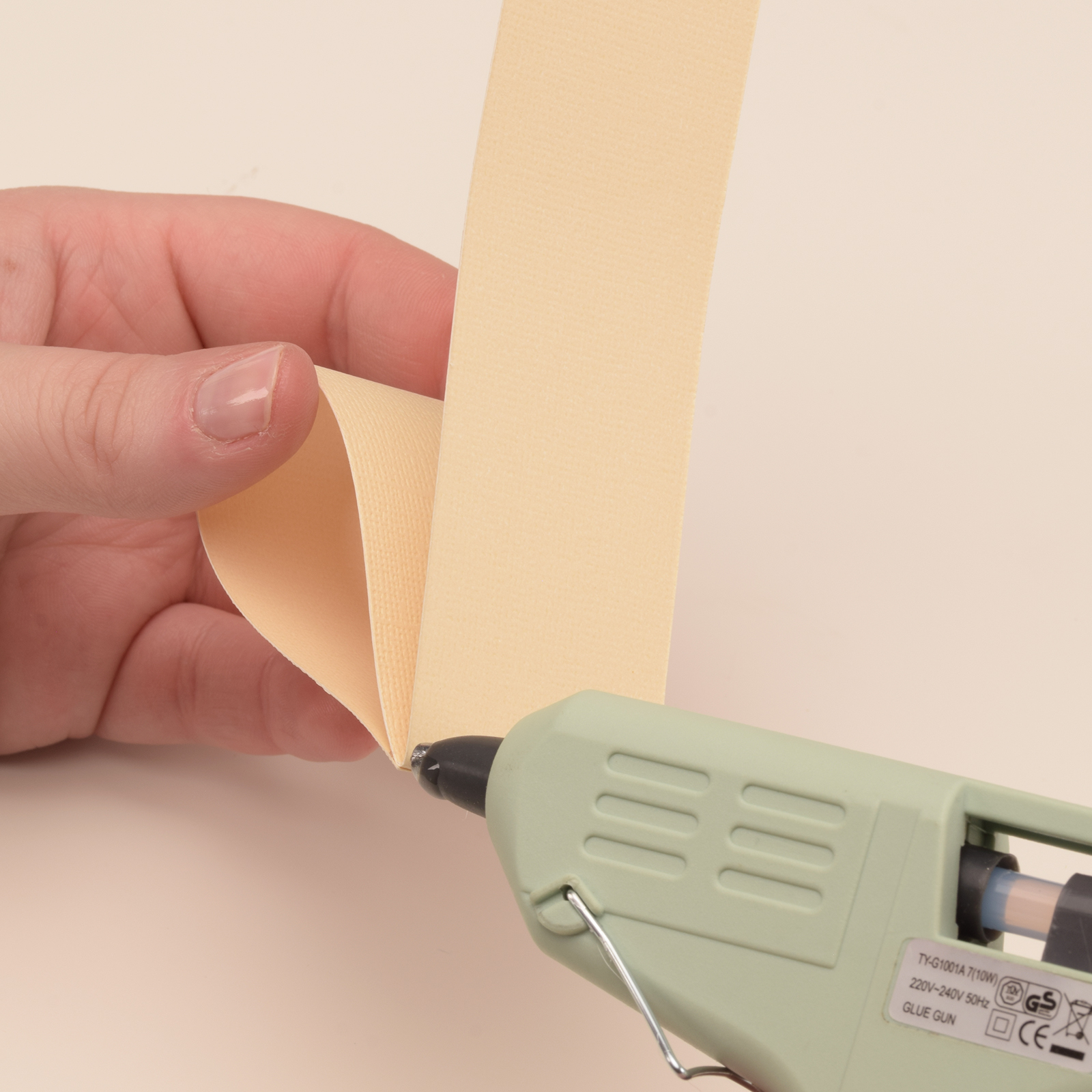 Lijm de enkel gerilde strook op zo’n manier dat het hazenoortjes worden.