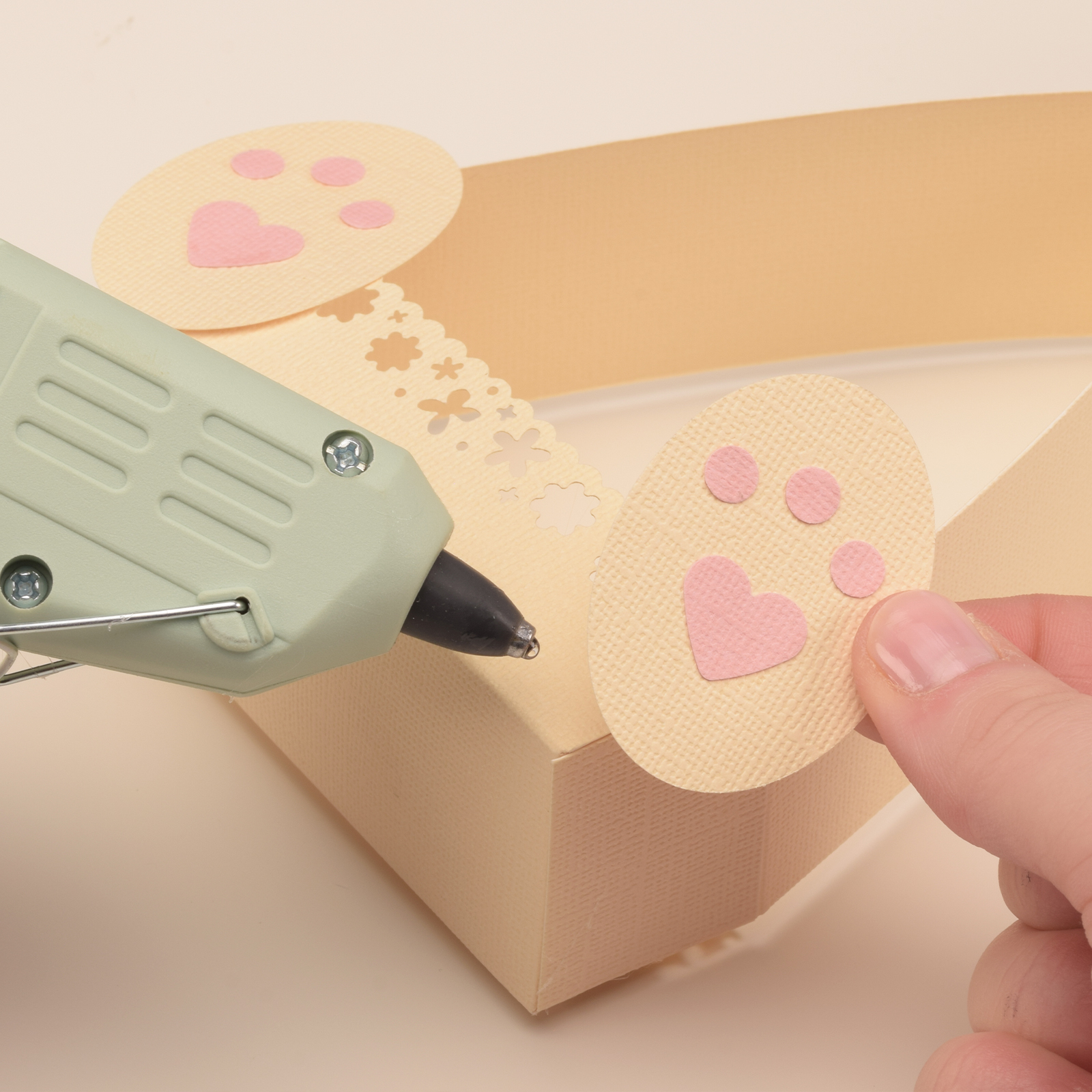 Lijm de pootjes aan het doosje.