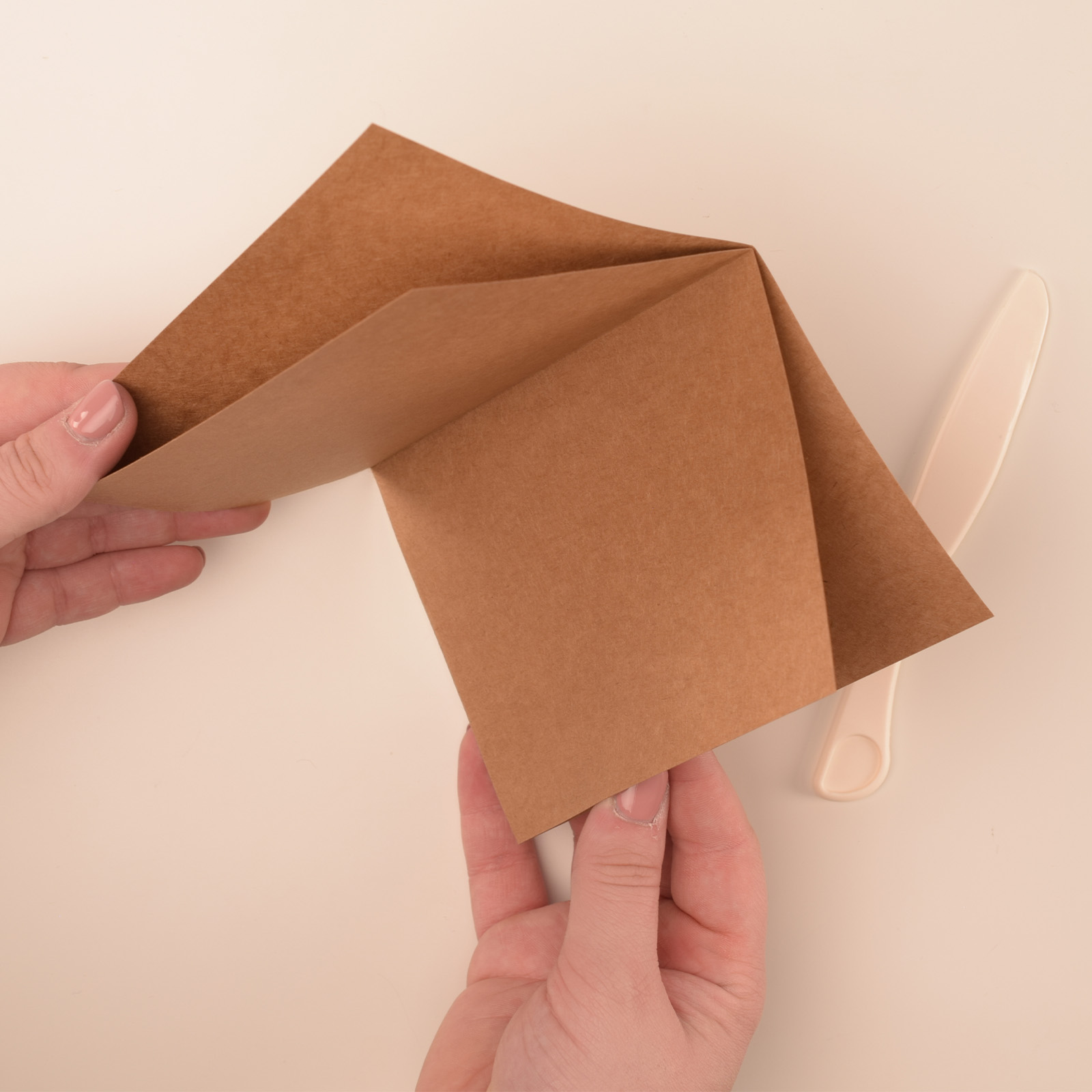 Start met een A4-papier en vouw het dubbel in de lengte (van boven naar beneden).
