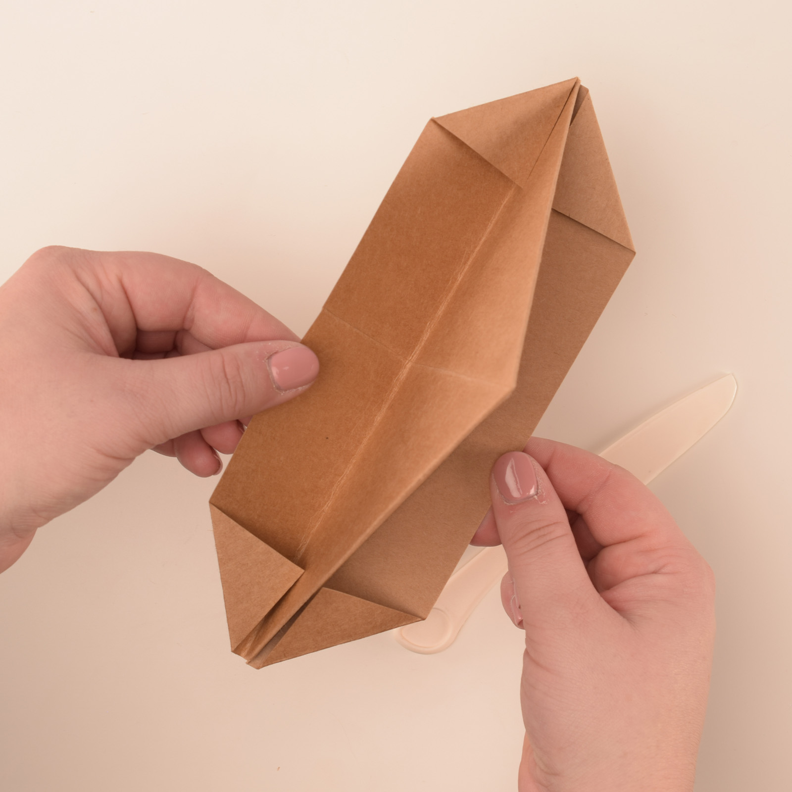 Open de onderkant en trek de hoeken naar buiten, zodat er een vierkant ontstaat.