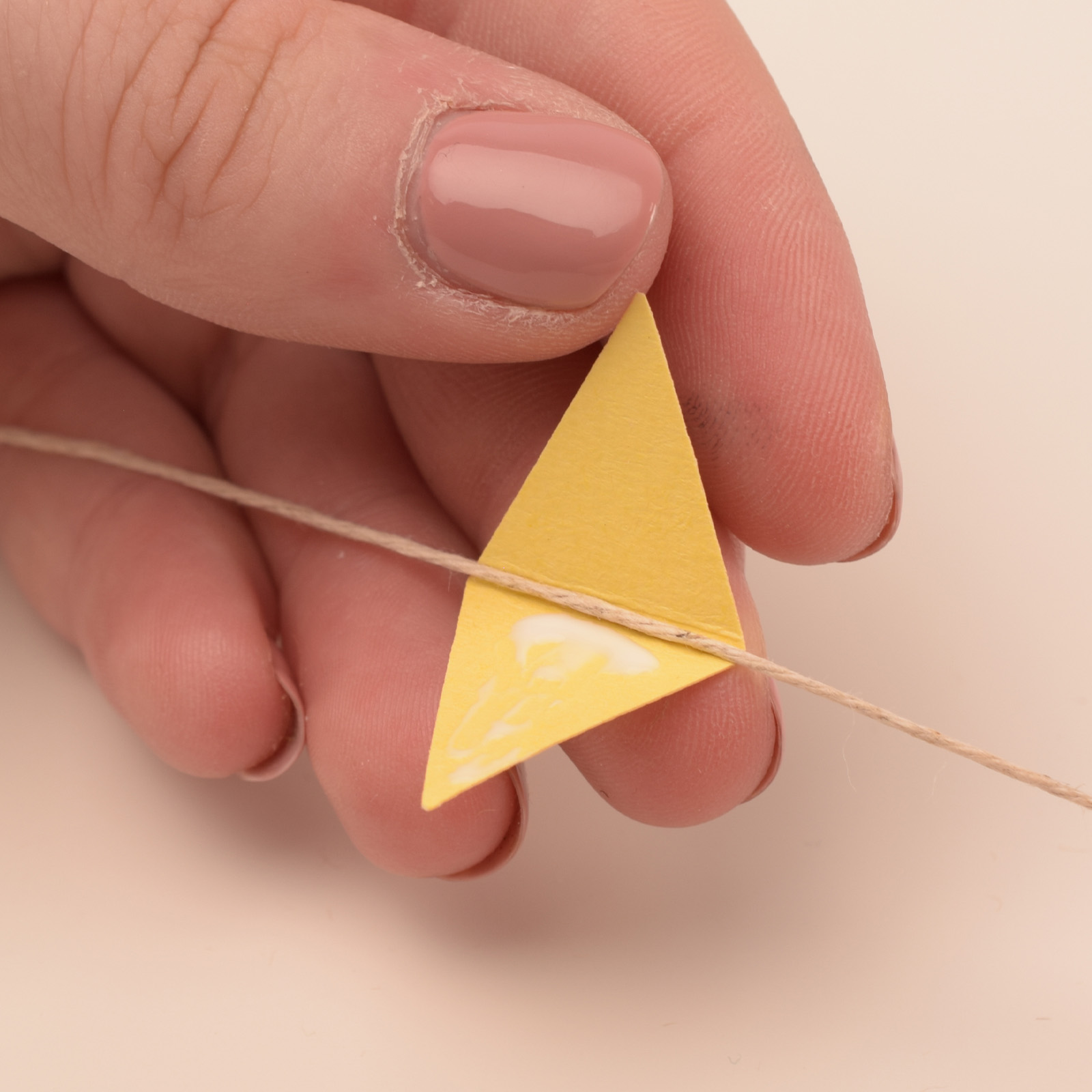 Vouw stroken van 4 cm breed cardstock dubbel en pons vlaggetjes uit door beide lagen.