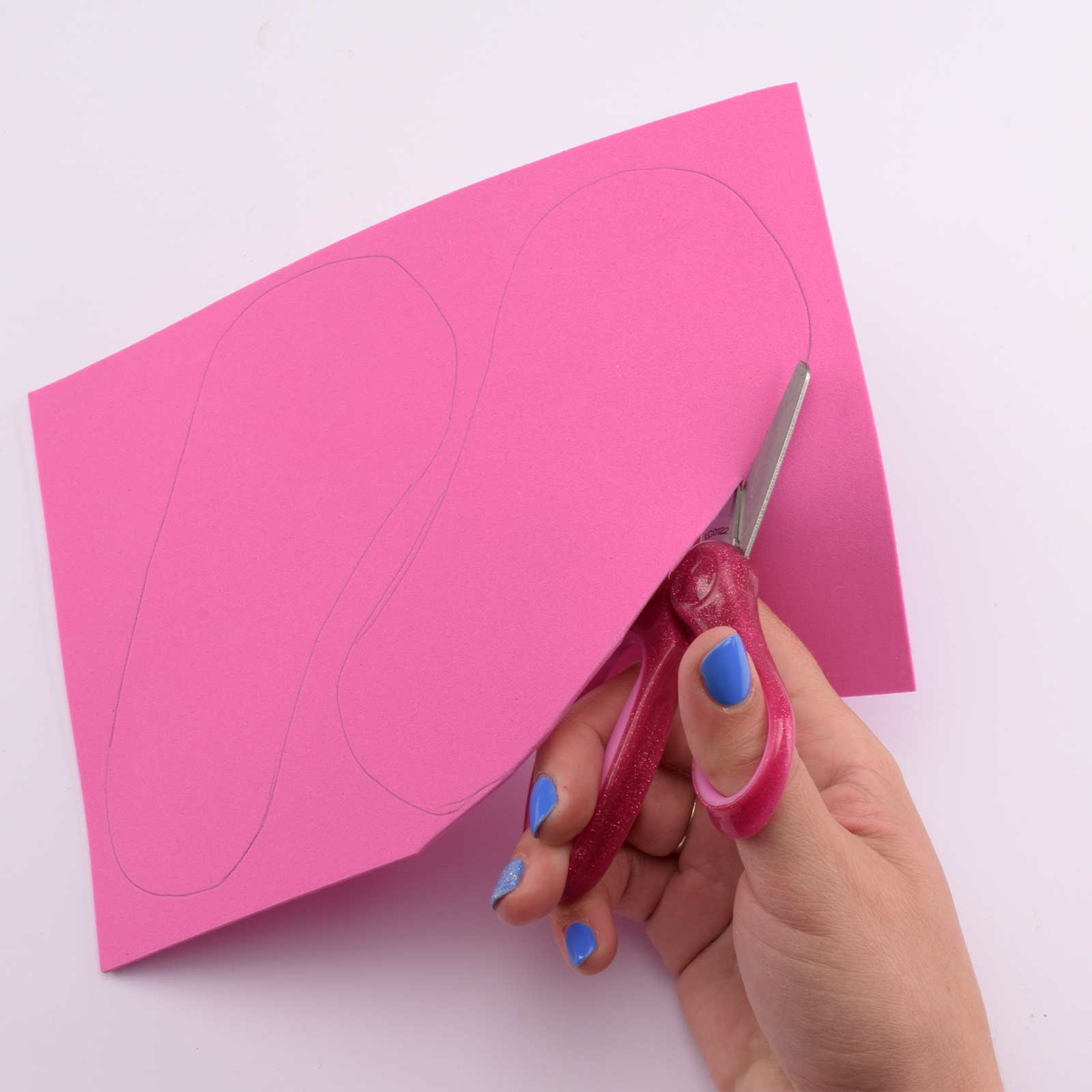 Teken de schoenzolen nog een keer op een ander vel foam en knip deze uit.