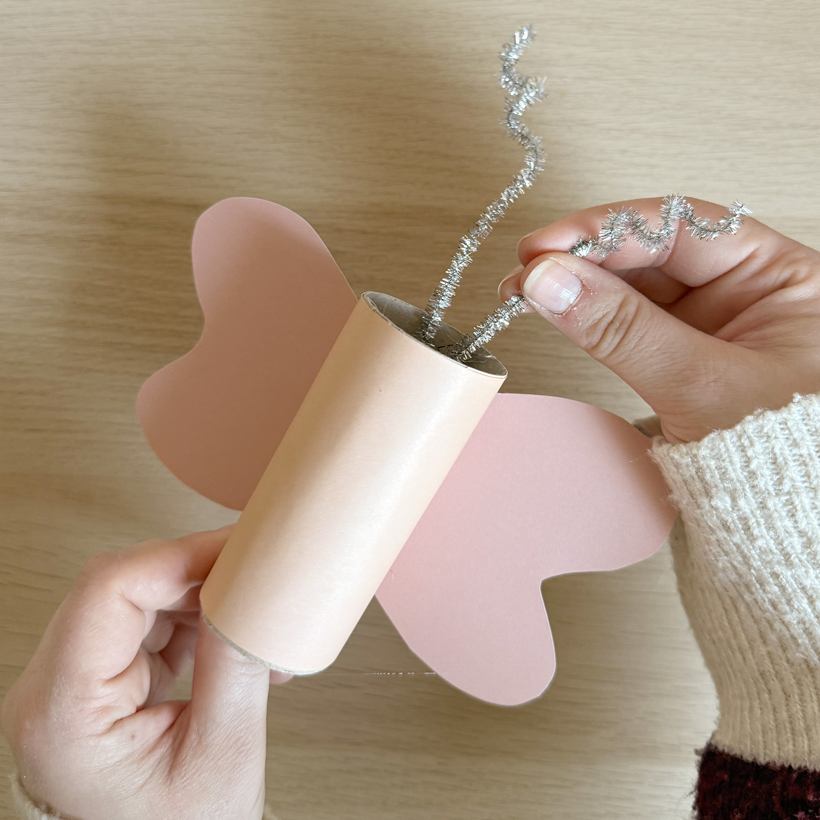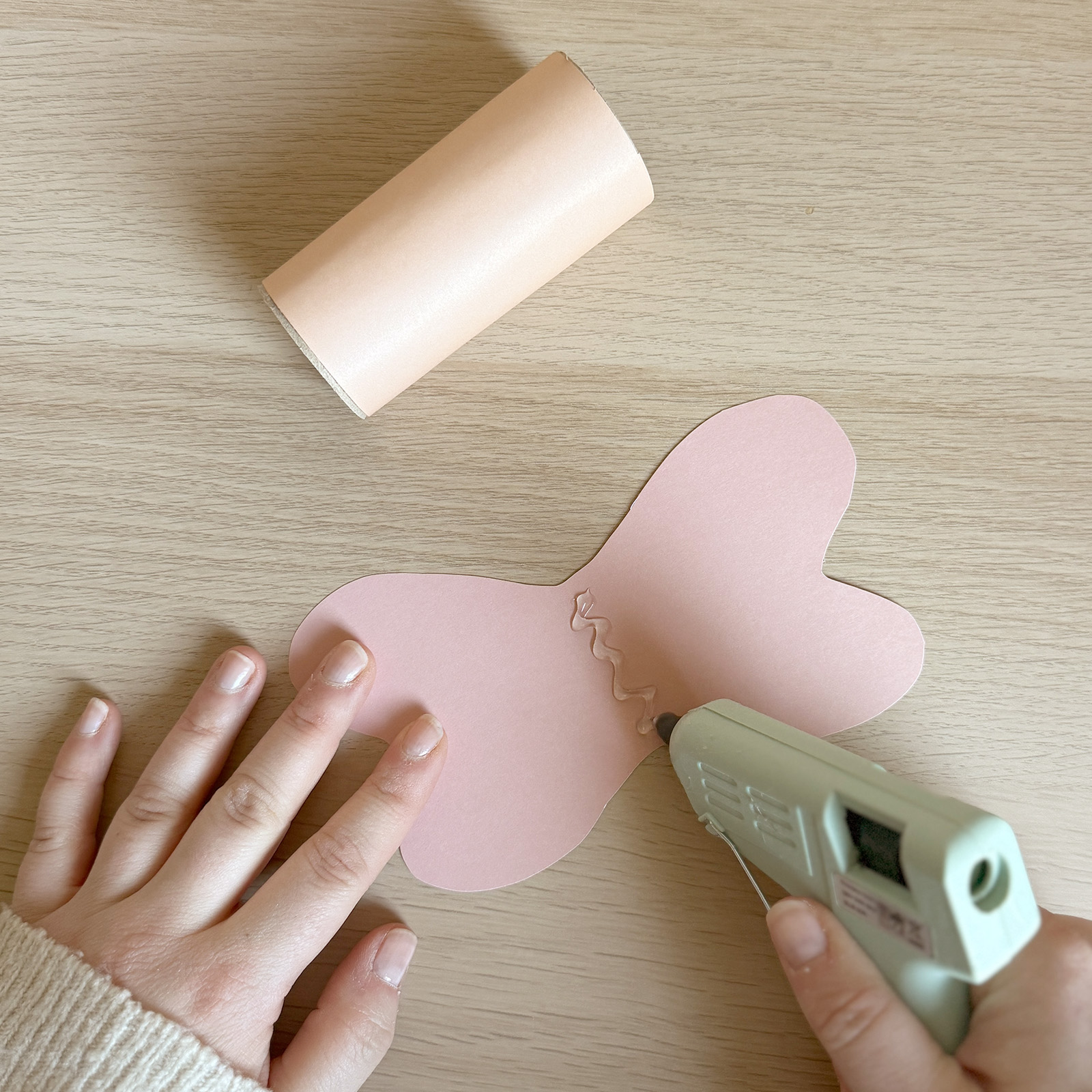Plaats de wc-rol direct op de vleugels voordat de lijm hard wordt.